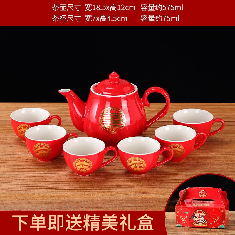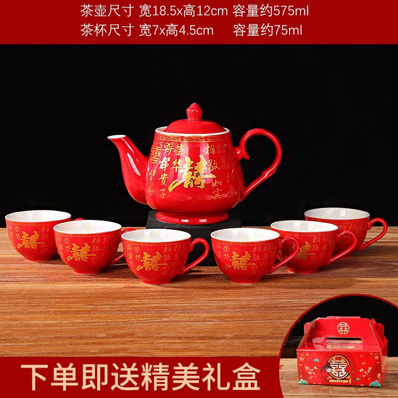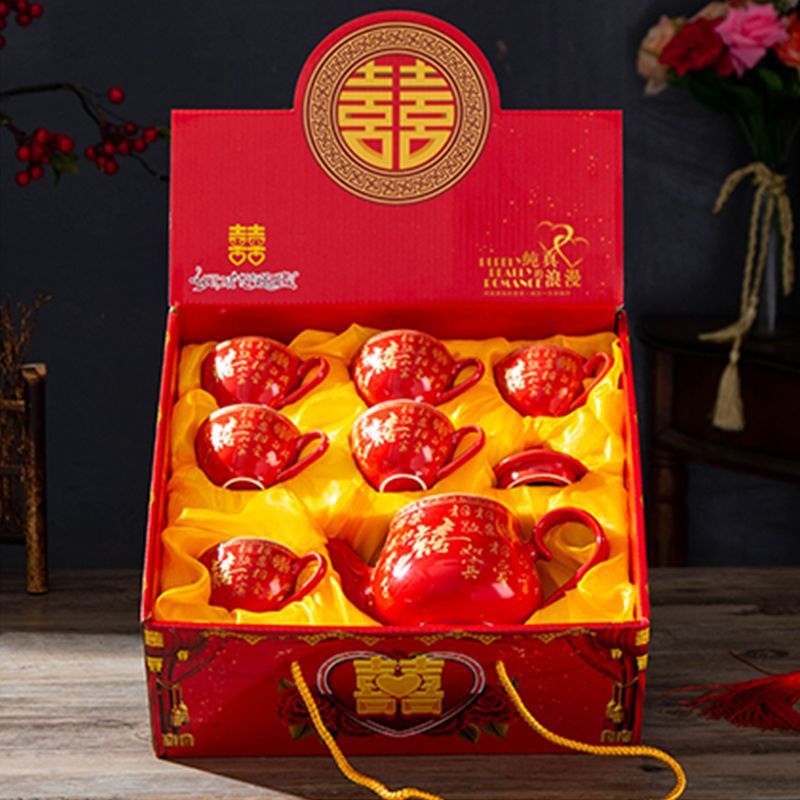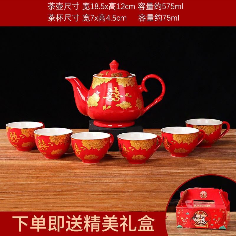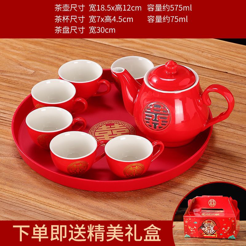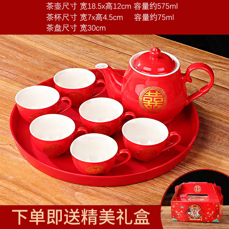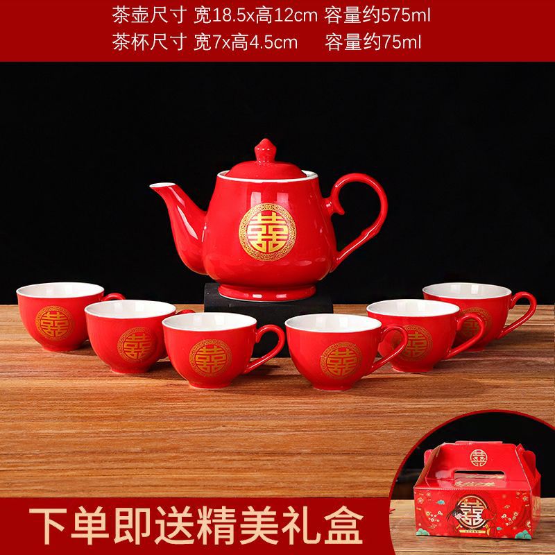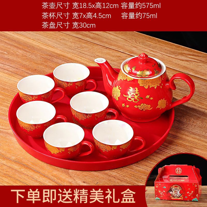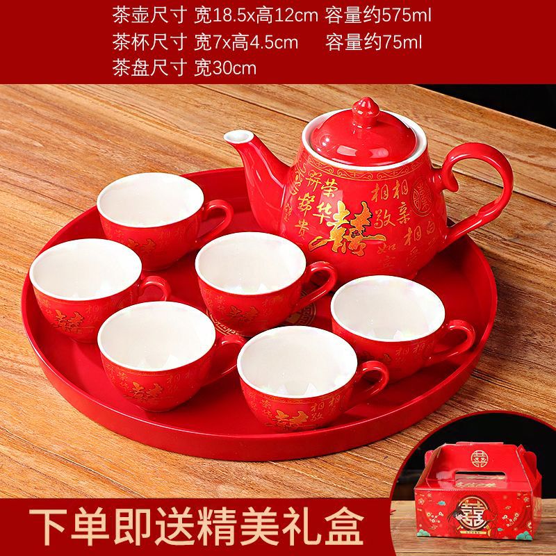結婚茶器セット一本六杯の持参茶器セット赤い結婚祝い用ネット紅創意安零容