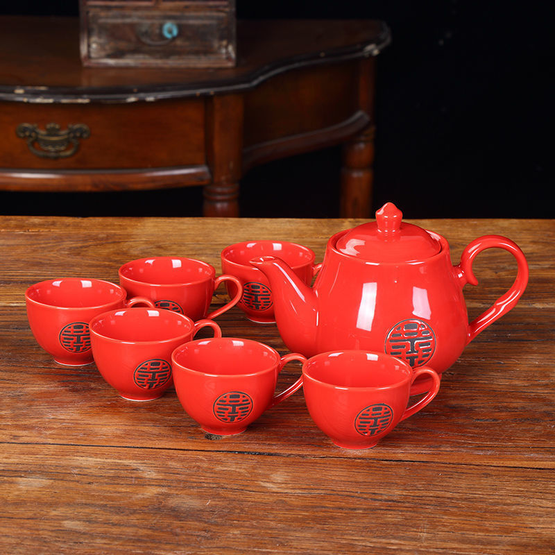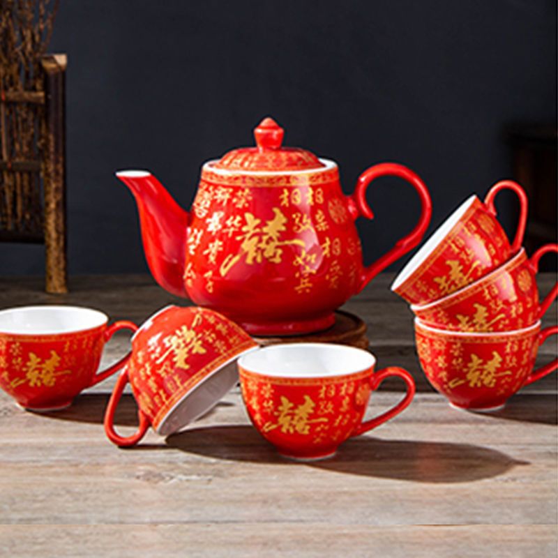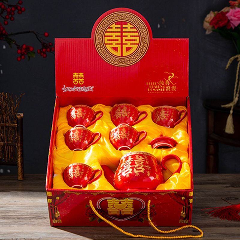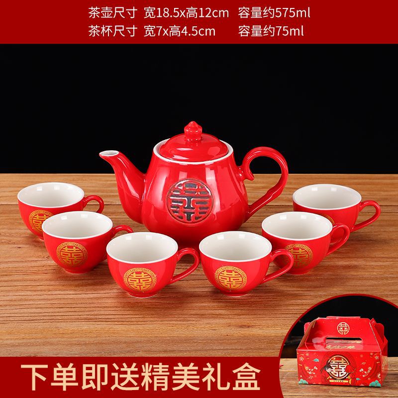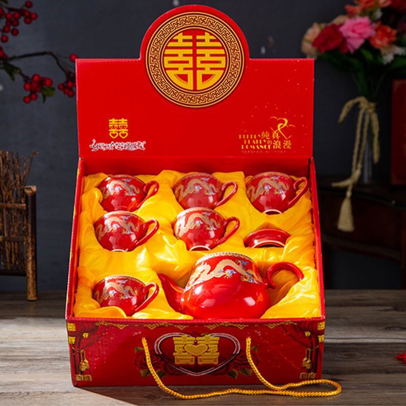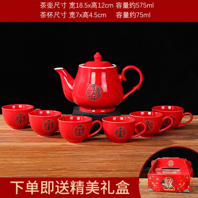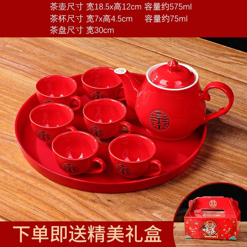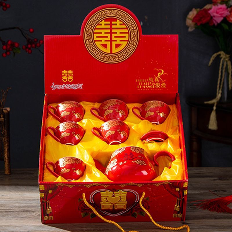 結婚茶器セット一本六杯の持参茶器セット赤い結婚祝い用ネット紅創意安零容