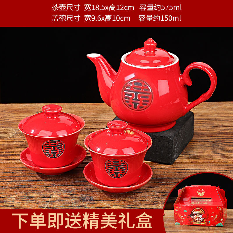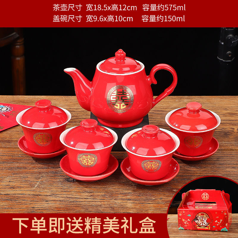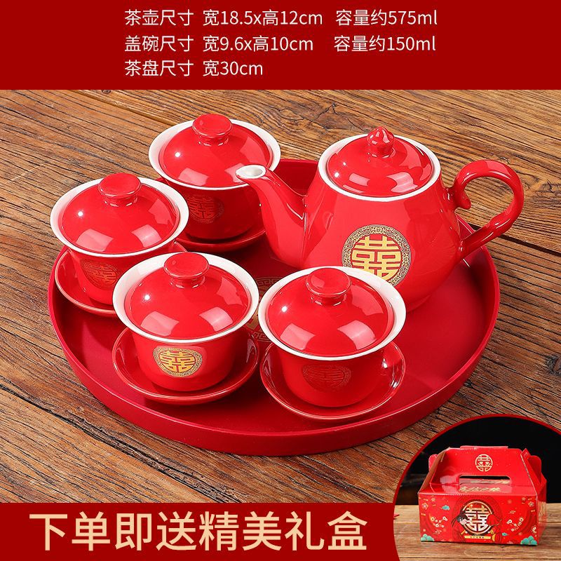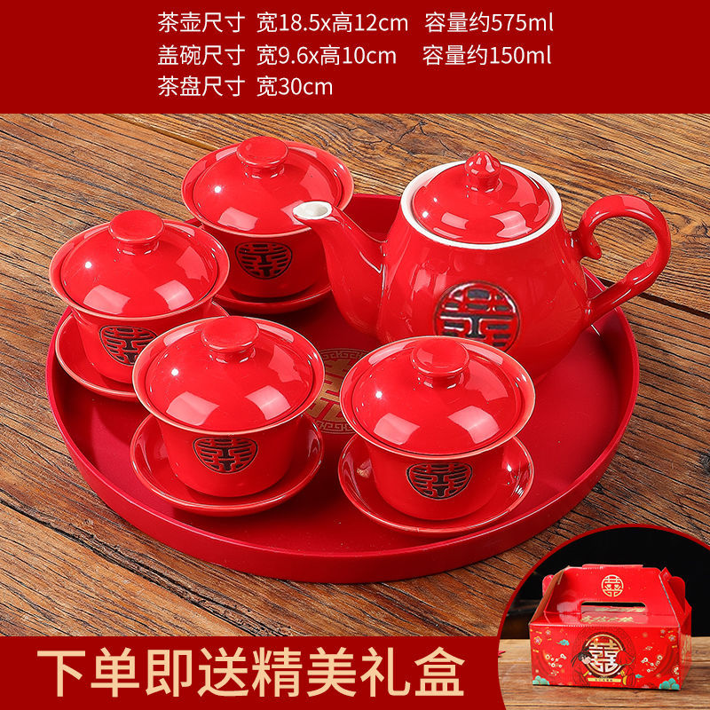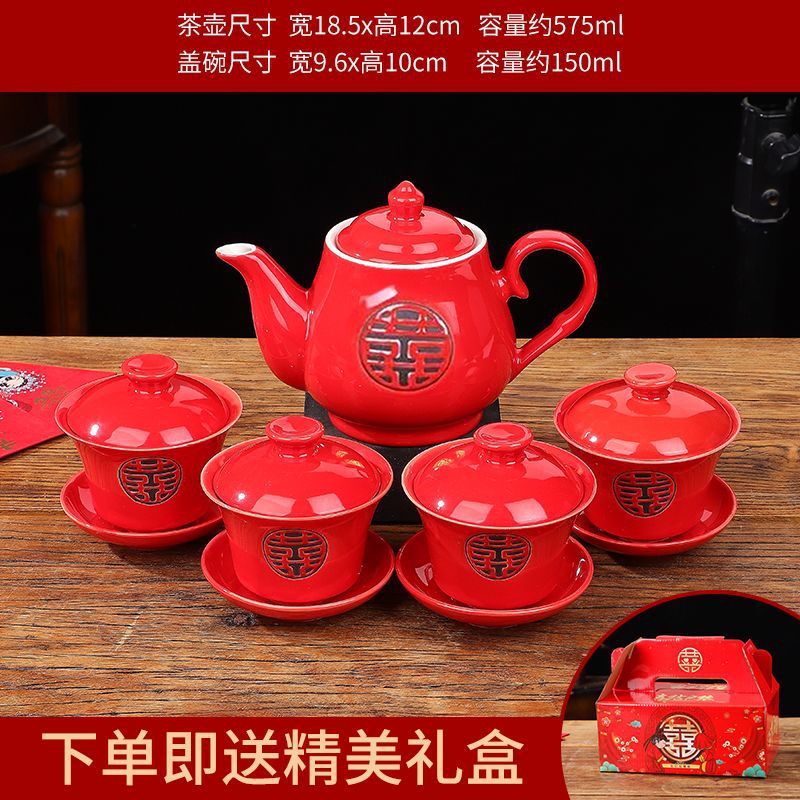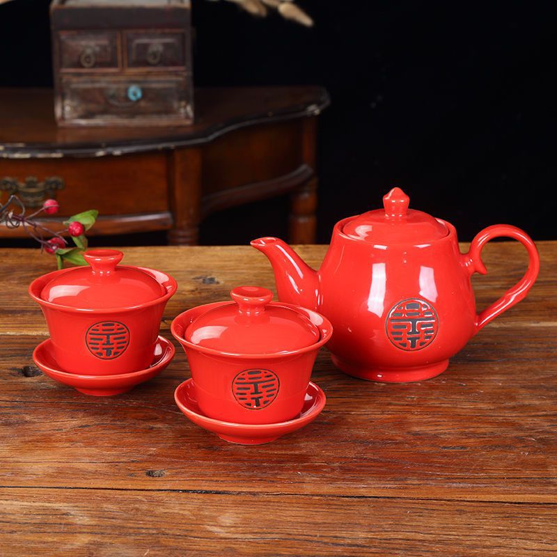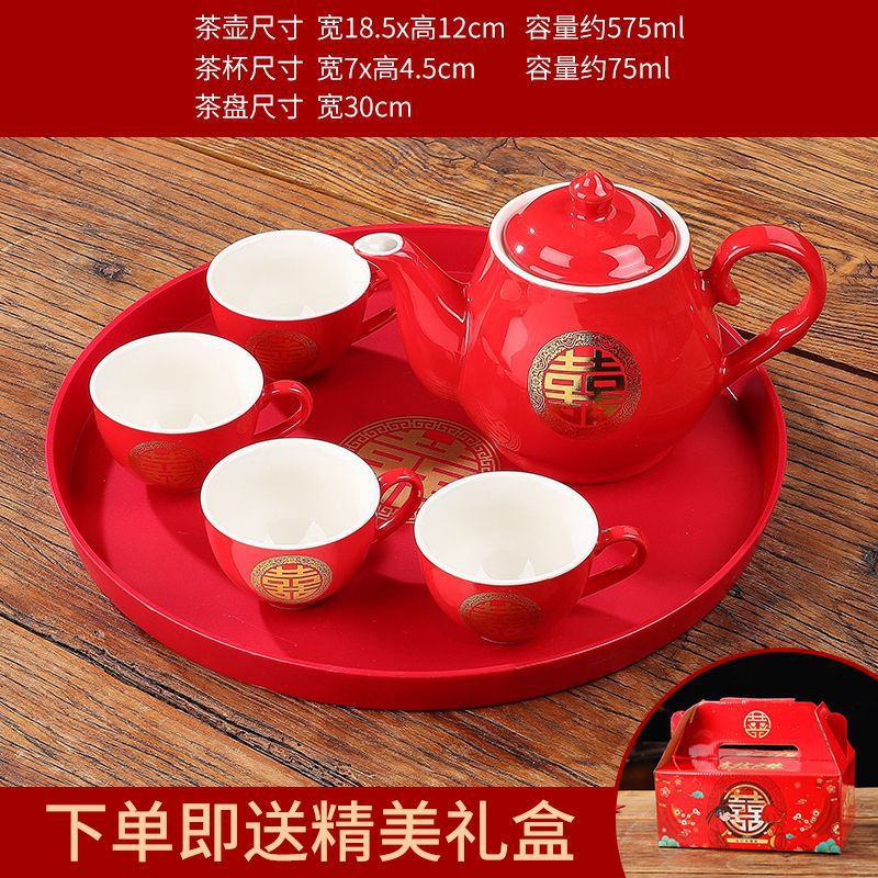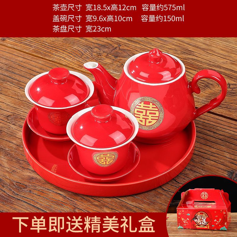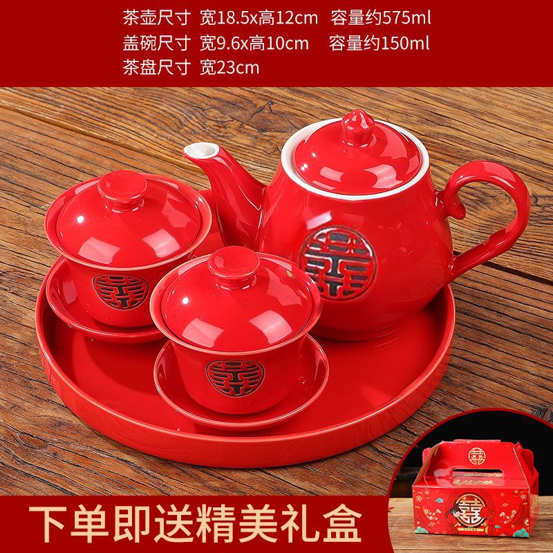 結婚茶器セット一本六杯の持参茶器セット赤い結婚祝い用ネット紅創意安零容