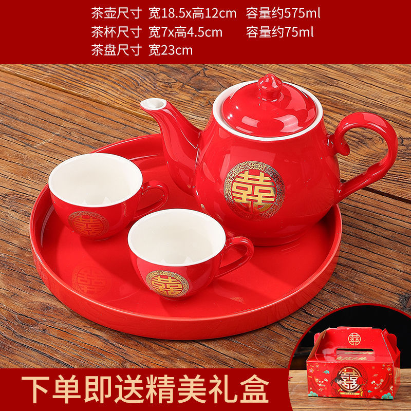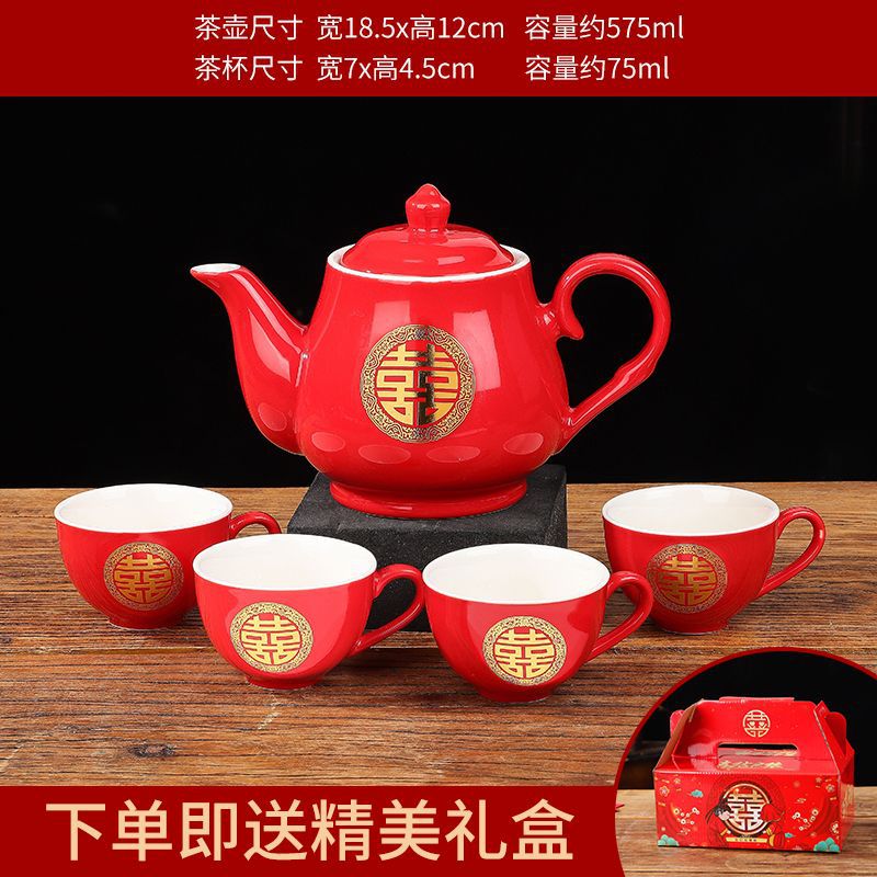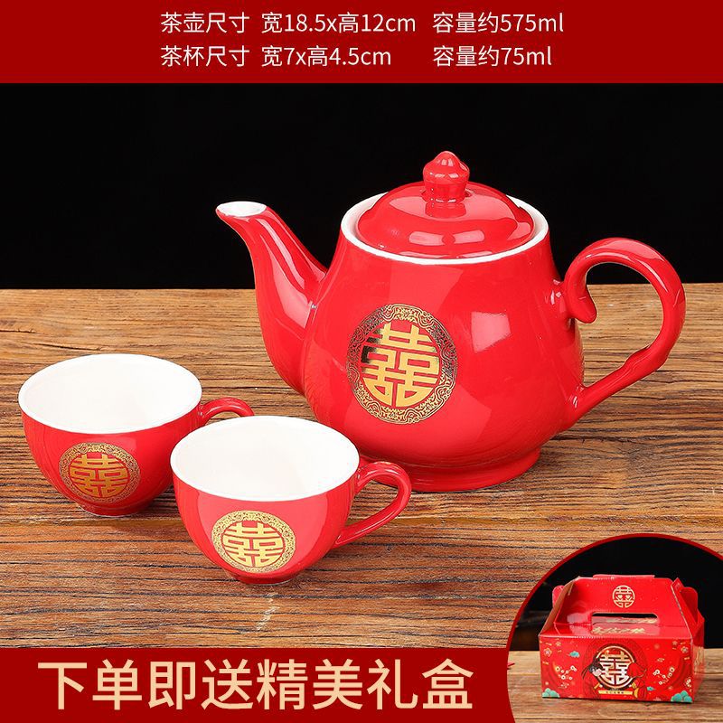 ウェディングティーセット レッドダブルハピネスケトル 結婚式新婚夫婦 ウォーターセット ウォーターカップ シンプルハッピーモデル