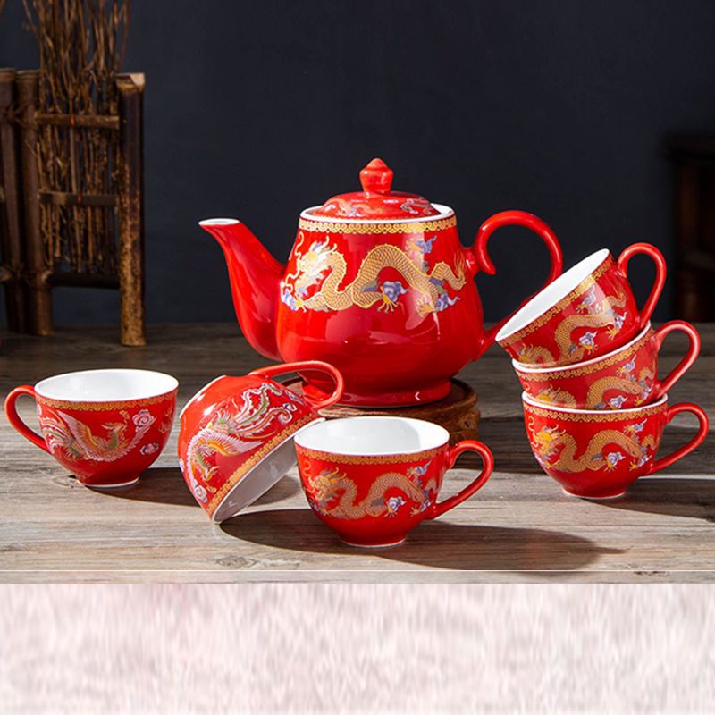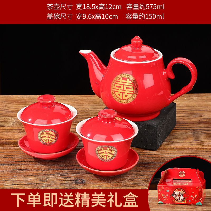 结婚茶器セット结婚祝い用品赤ティーポットティーカップギフトボックス陶磁器ダブルパーティー结婚式ティーカップ