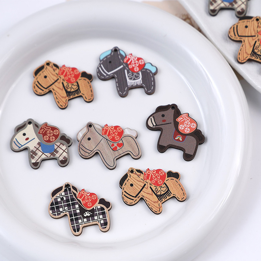 【马上有钱】创意萌趣木制可爱小马 手工diy手机链饰品配件坠子散