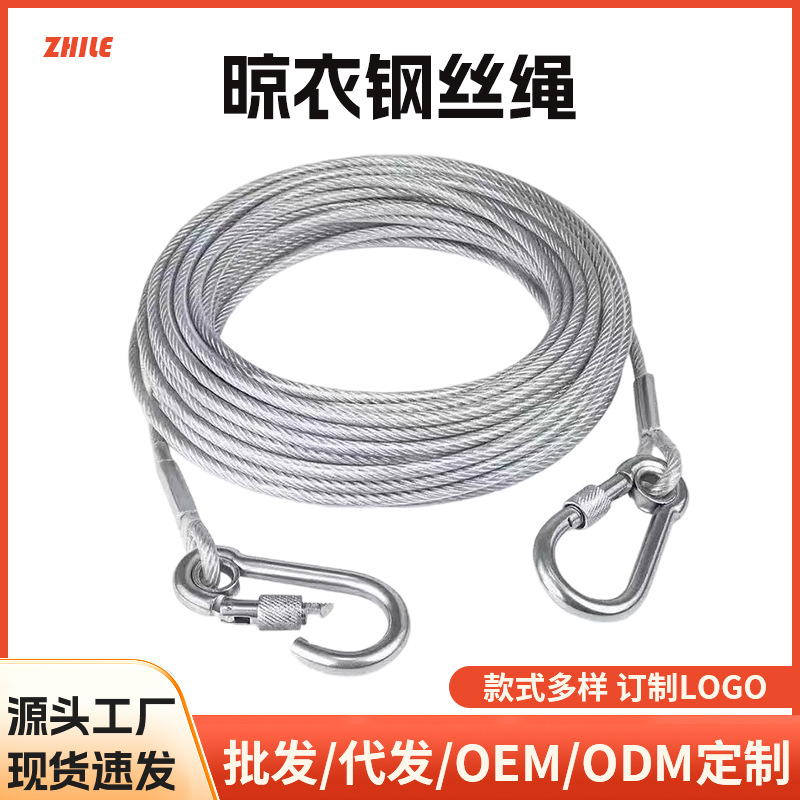 ゴムコーティングされたスチールワイヤーロープ、吊り下げ金具付き、寝室、寮のカーテン、ベッドカーテン、吊り下げロープ、屋外物干しロープ、牽引ロープ、犬のリード
