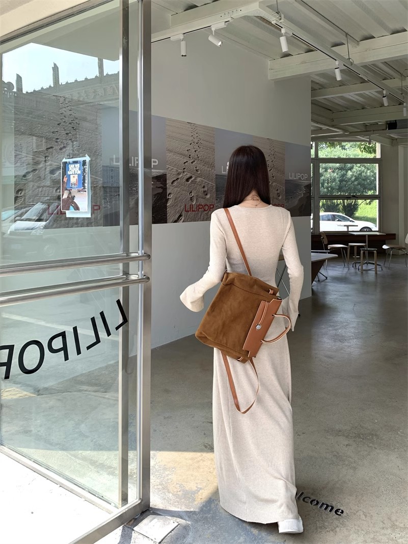 プレビューギャルの純欲風の中にvネックのニットのワンピースを掛けます。
