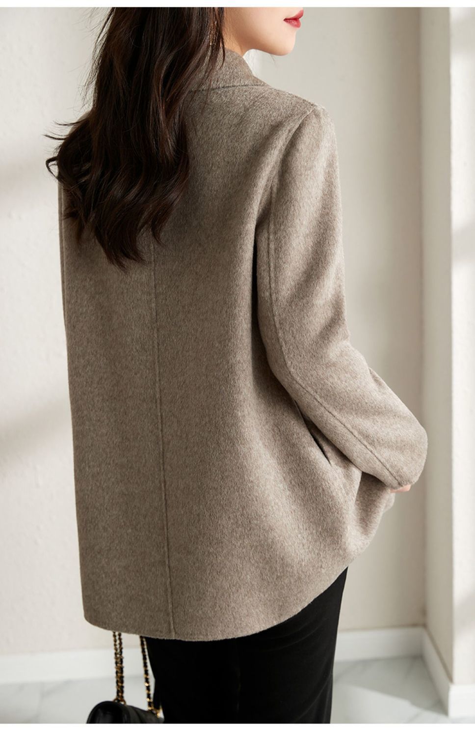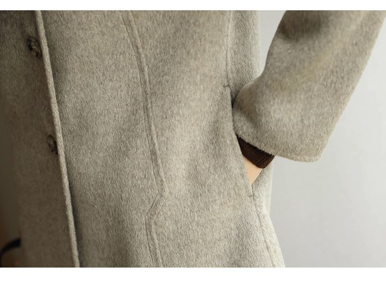 毛のコートの女性の長いタイプの2024冬の新型の両面は絨毛のウールをまねて色の気質の赫本の風がやせているコートを現します。