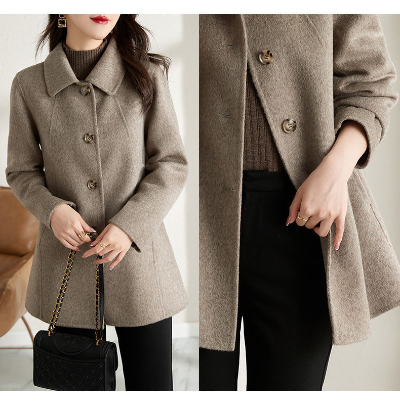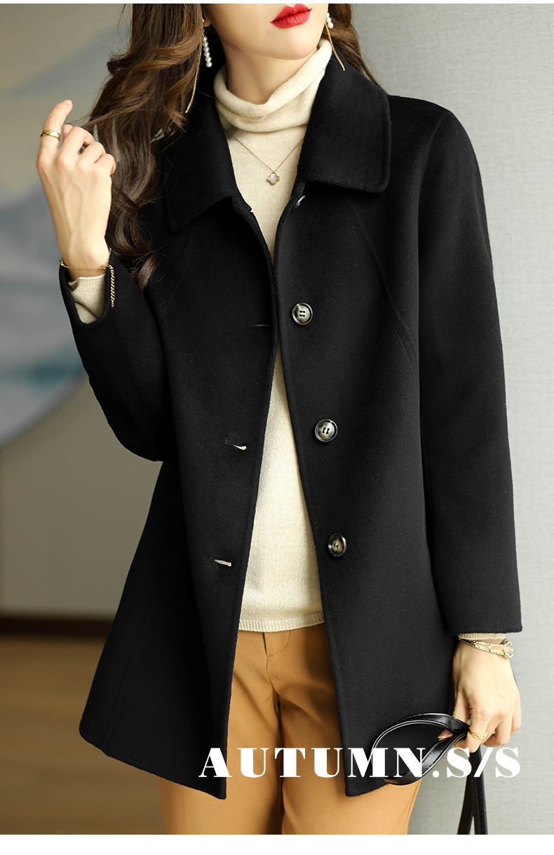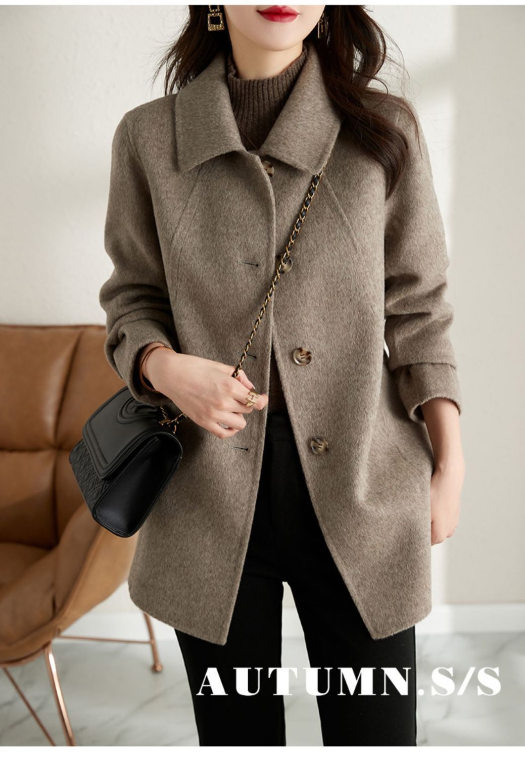 2025秋冬新作 ヘップバーン風コート ミドル丈 スリムフィット ドールカラー 小柄さん向け ウールコート レディース