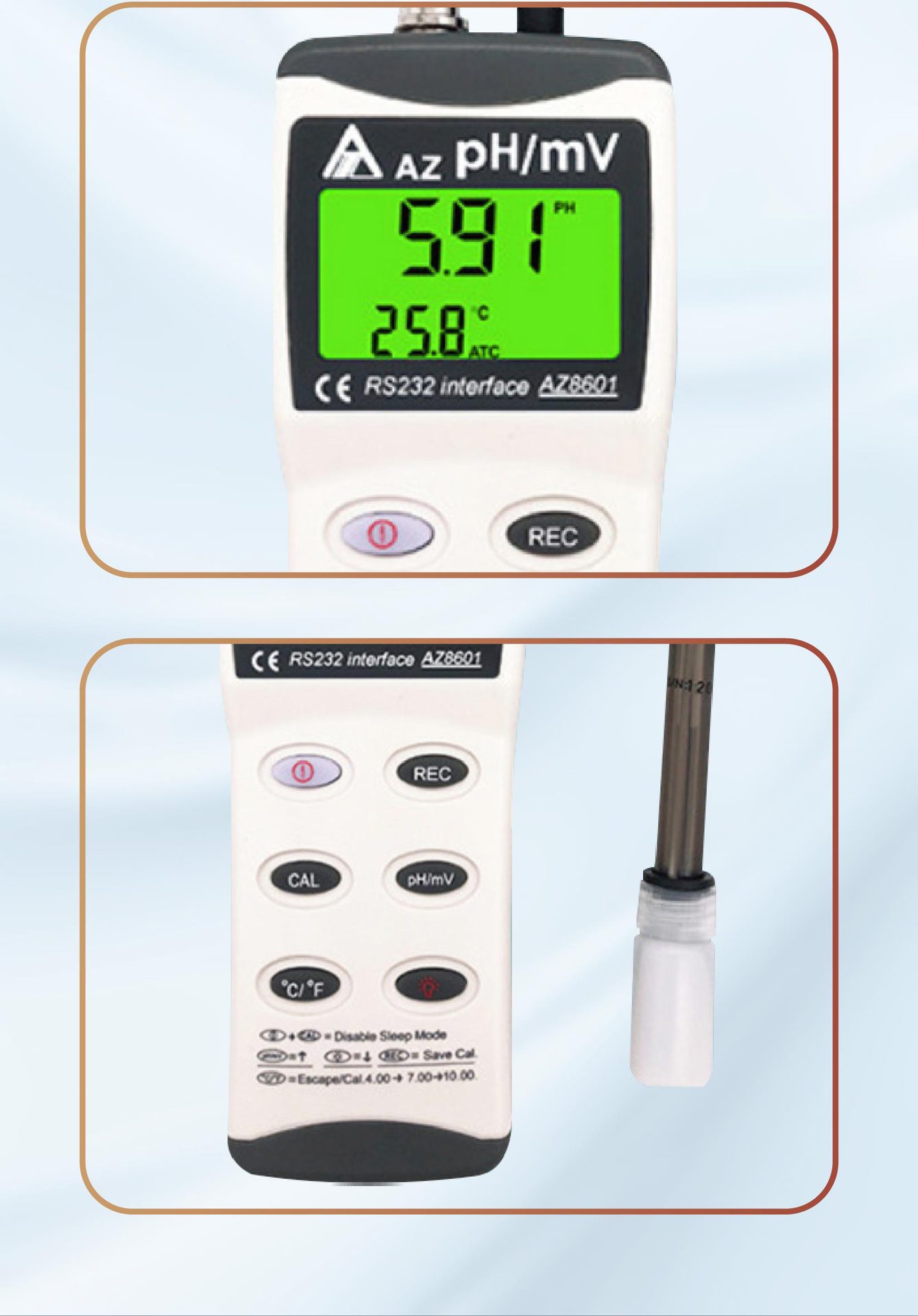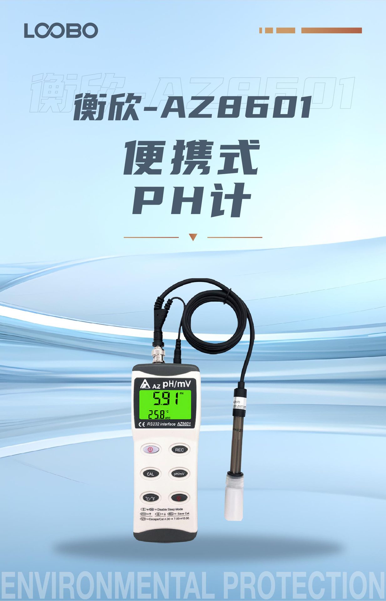 台湾衡欣AZ8601ポータブルph計自動3点校正手持ち式水中ph測定器