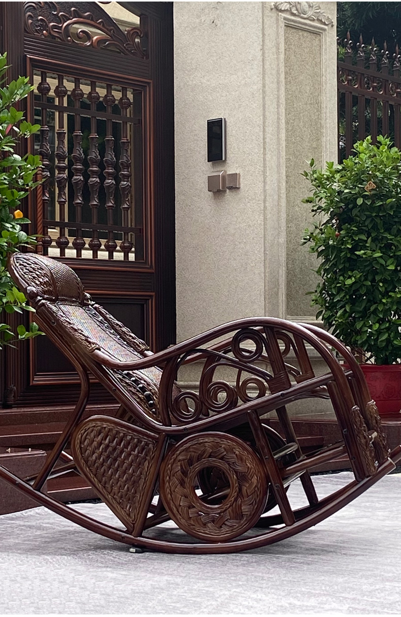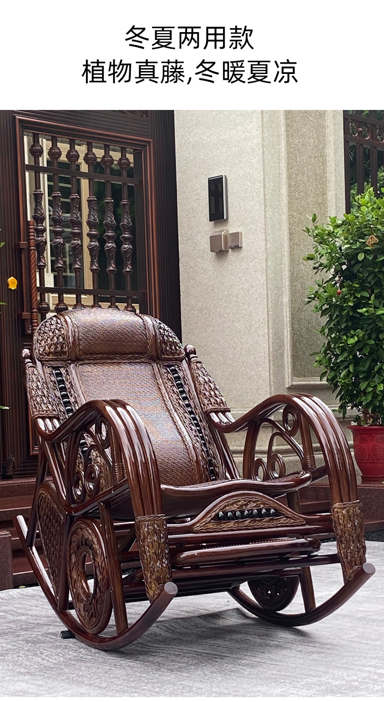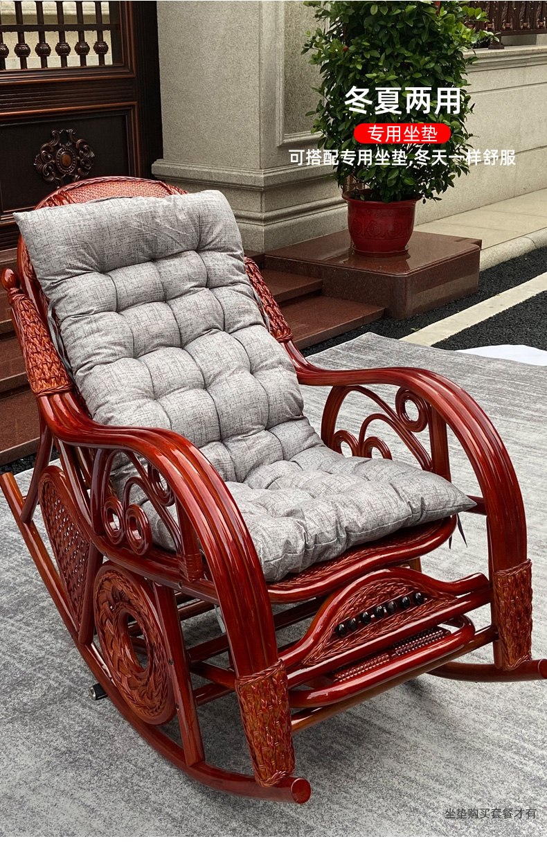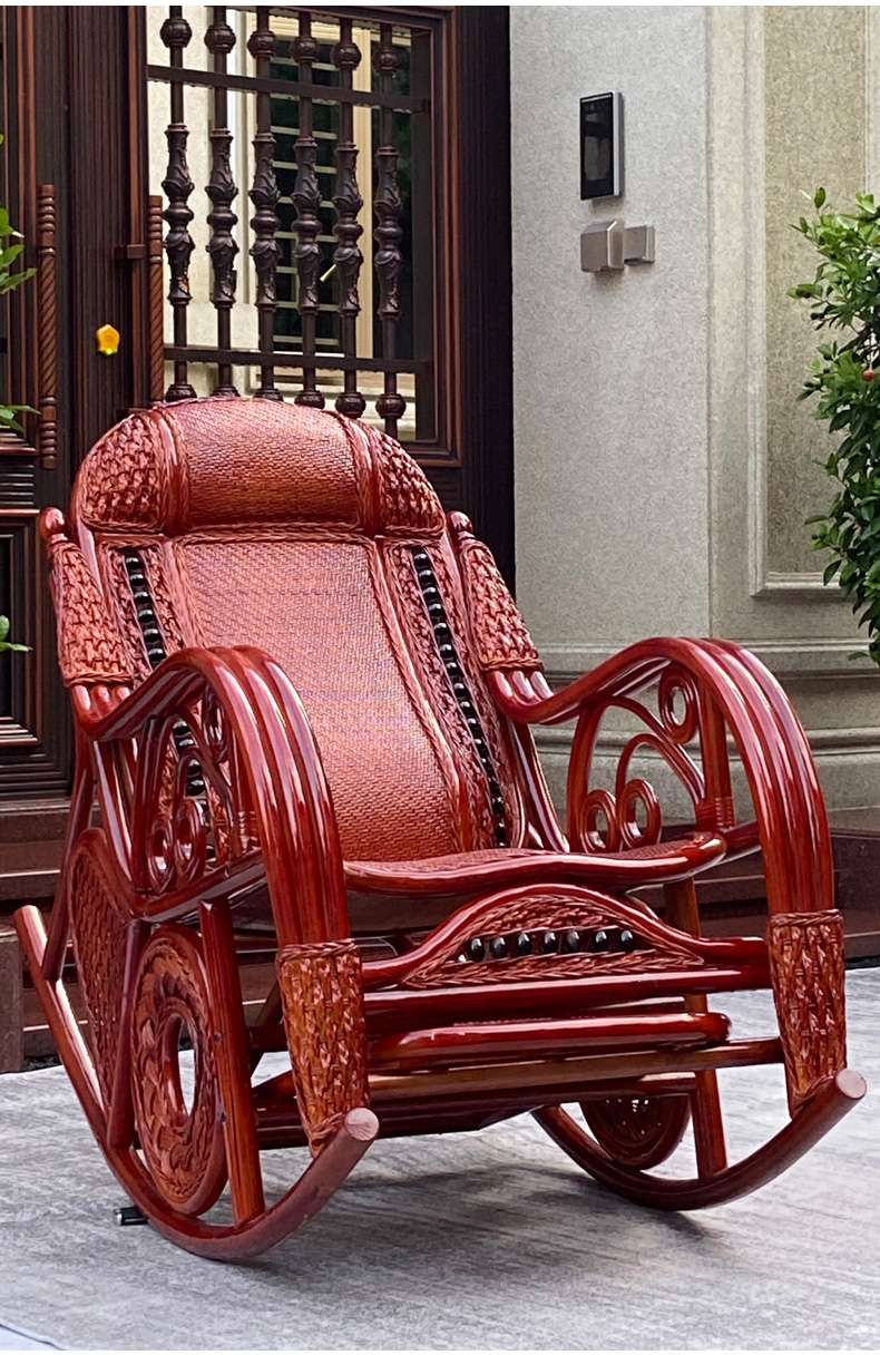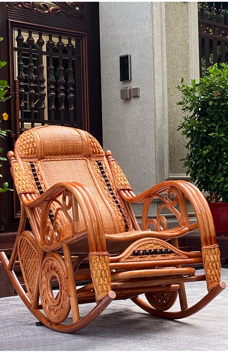 天然真籐ロッキングチェア大人ベランダ家庭用レジャー老人寝椅子籐編み籐チェアロッキングチェア