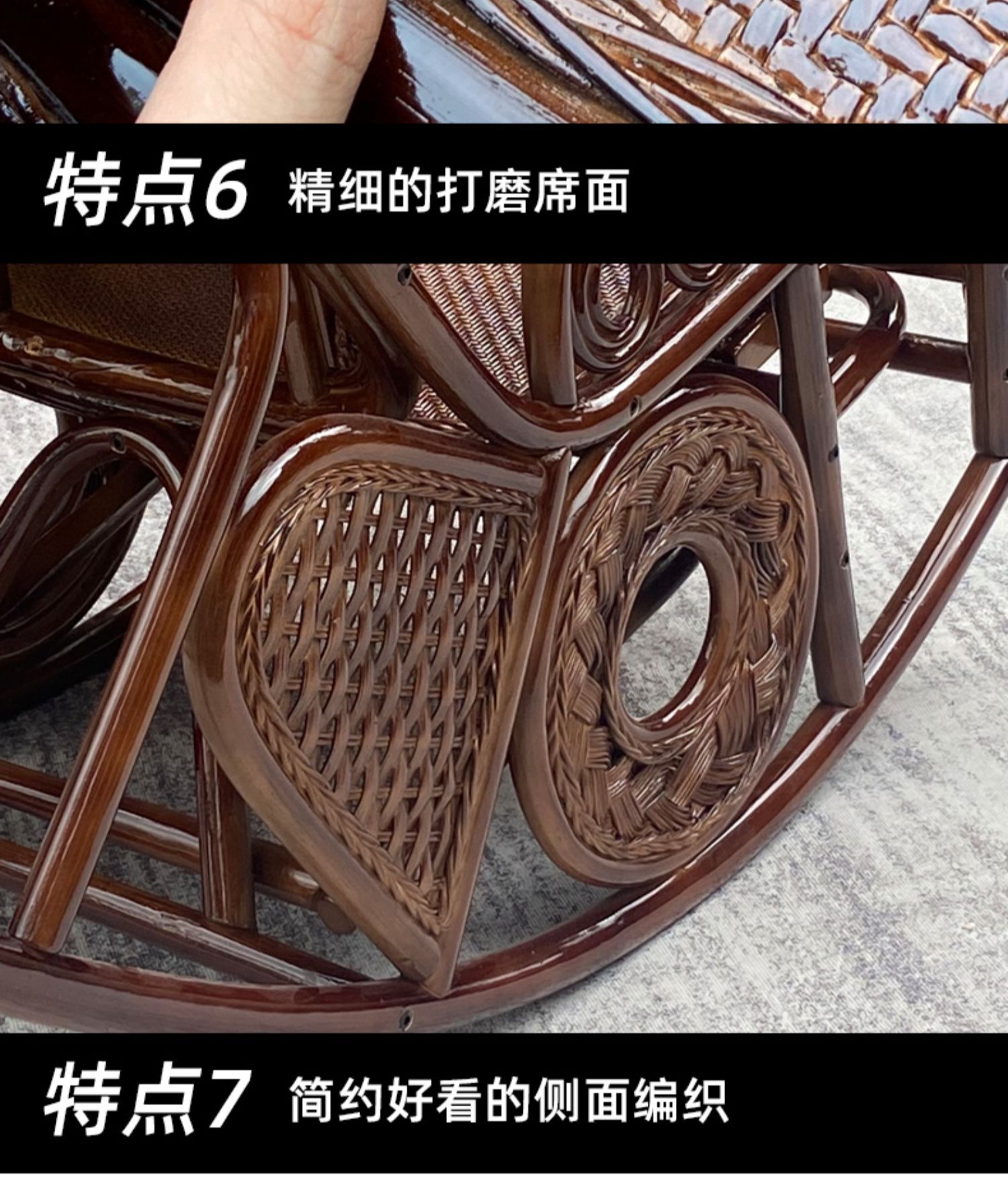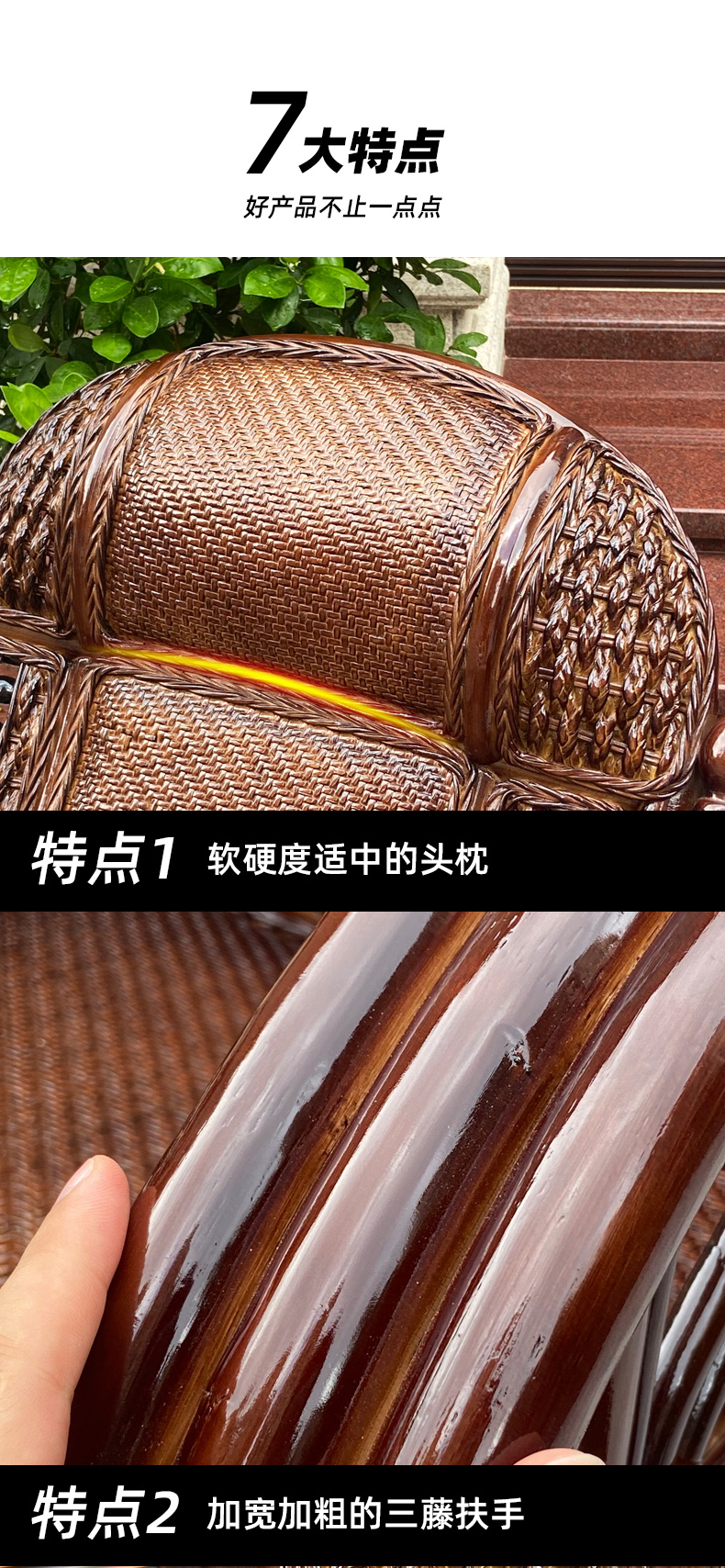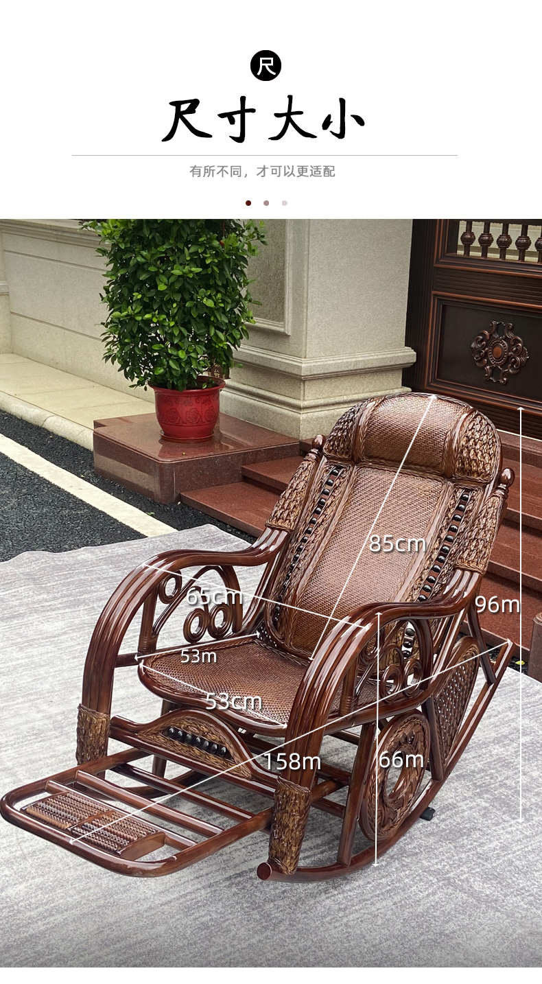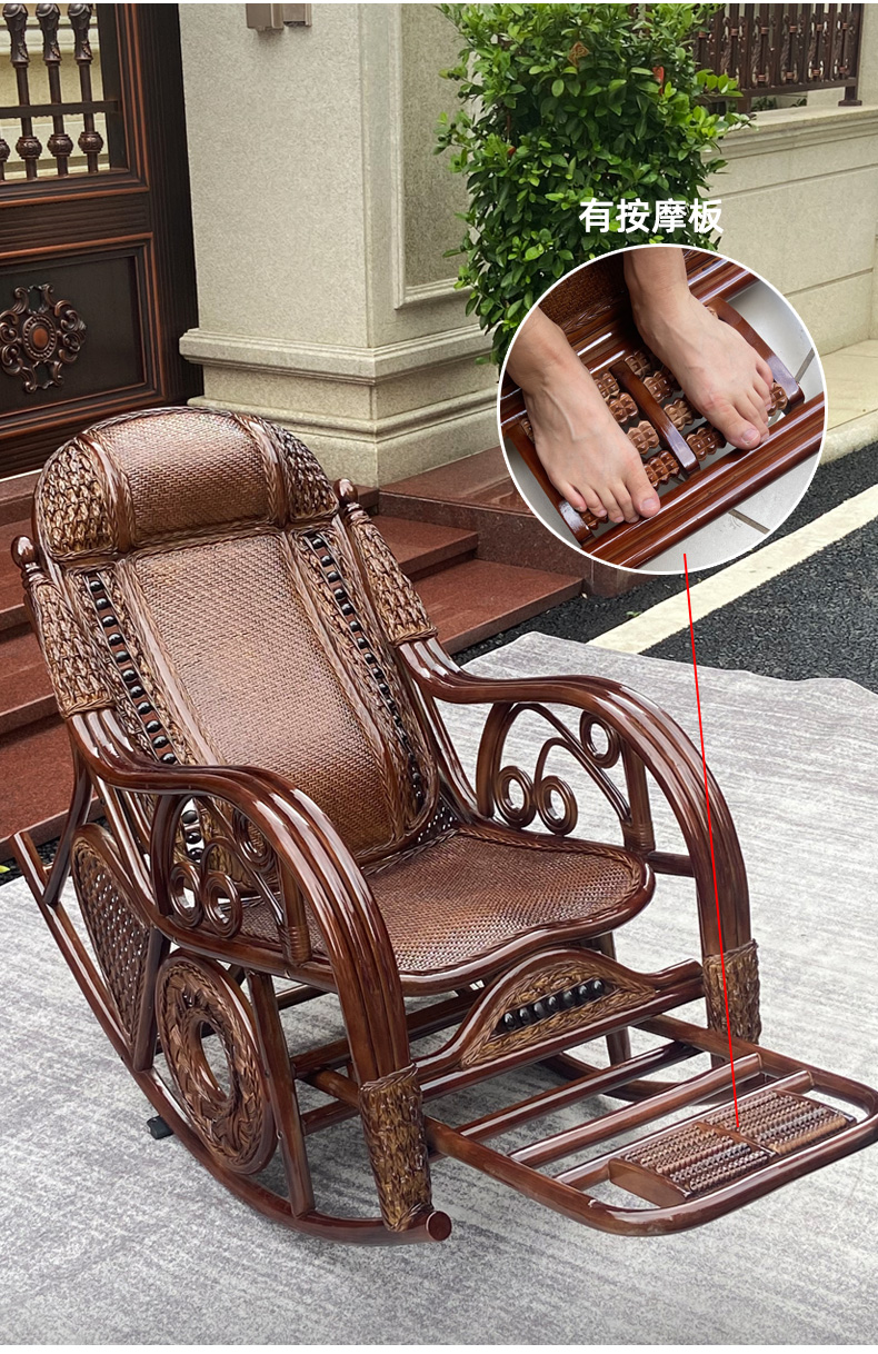 天然真籐ロッキングチェア大人ベランダ家庭用レジャー老人寝椅子籐編み籐チェアロッキングチェア