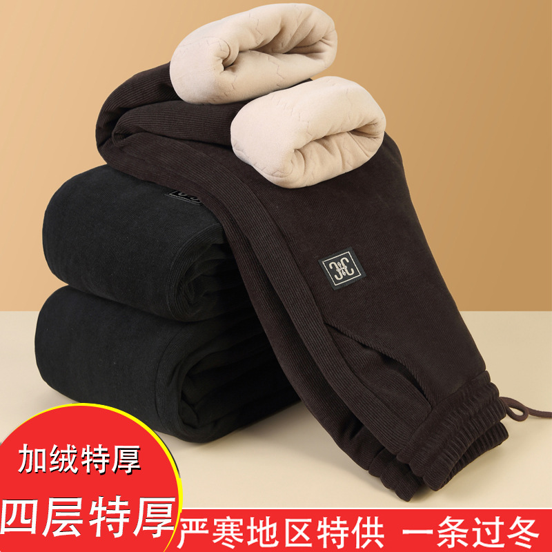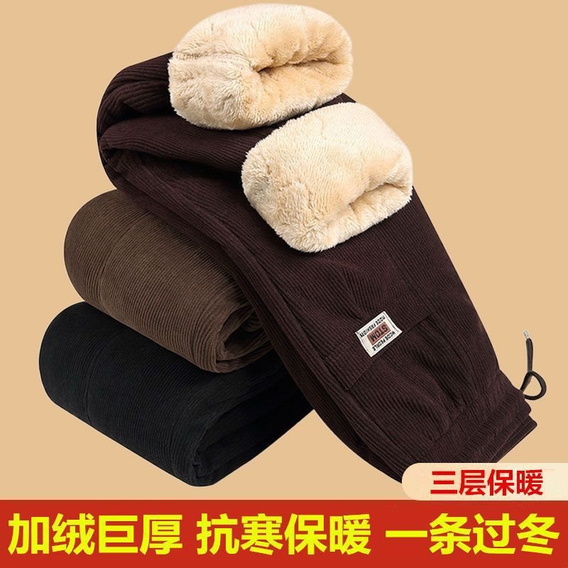 中高年の秋冬の女性のズボンとベルベットの厚い綿のズボンのコーデュロイのおばあさんのズボンの保温のお母さんの東北の特厚のズボン