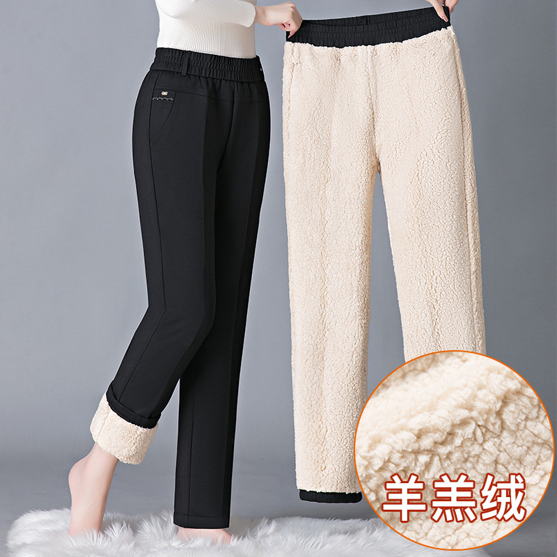 ベルベットは、冬のシルク綿のズボンを着ているお母さんのズボンの高腰ストレートパンツの新しい中高年保温ズボンを厚くしている