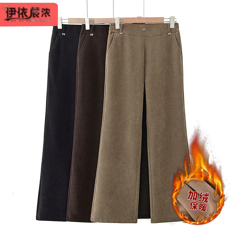 卸売りの中年の女性のズボンとベルベットのズボンは保温して厚い大きいサイズのお母さんのズボンの純色のまっすぐな筒の高い腰はやせている女性のズボンを現します。
