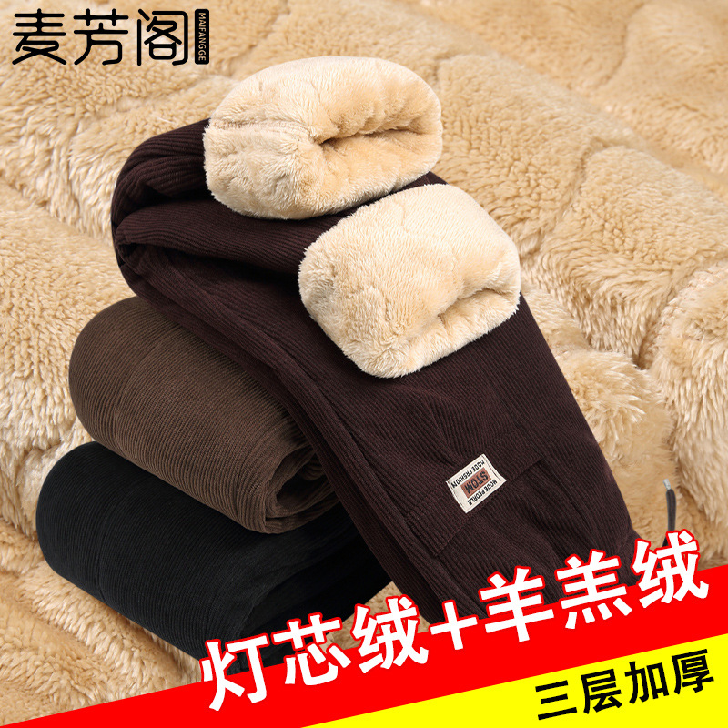中高年の女性のズボンのコーデュロイの冬の綿のズボンのお母さんのズボンとベルベットの厚いおばあさんのズボンの羊の小毛の保温ズボン