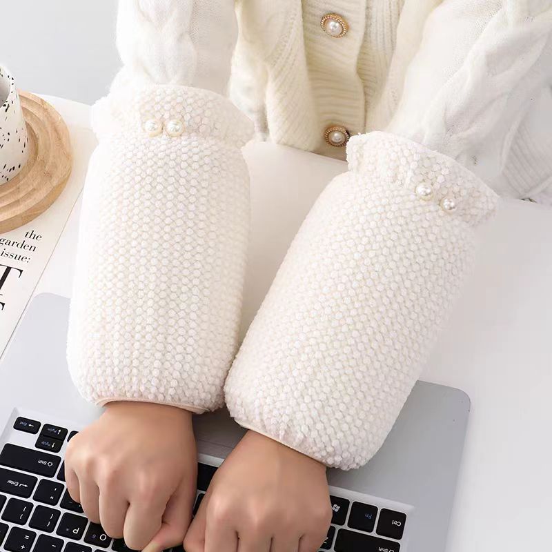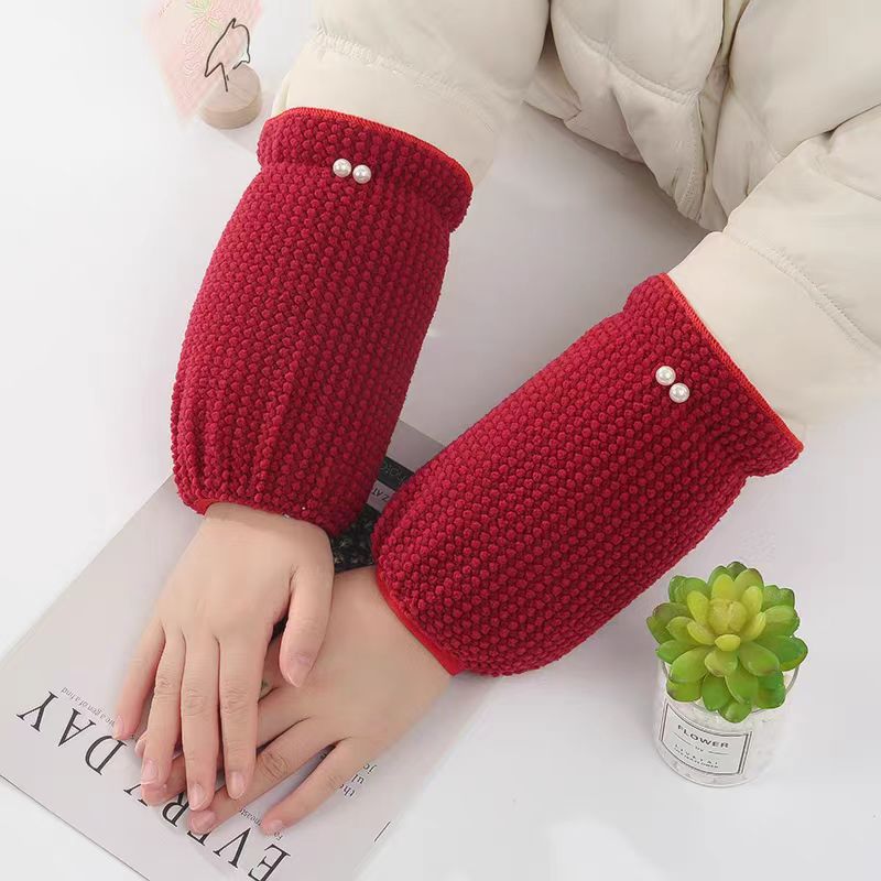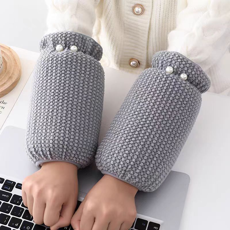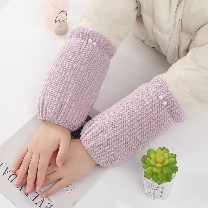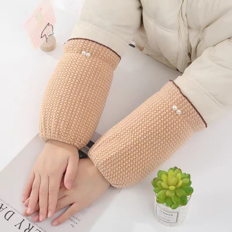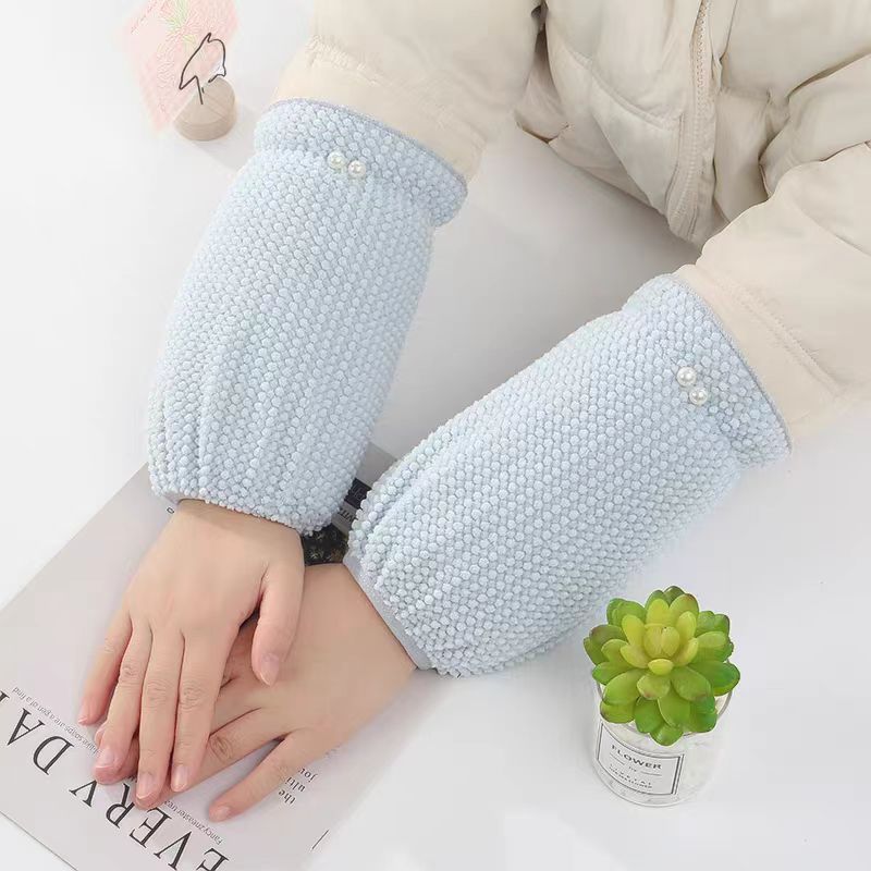 新しい真珠の袖のカバーの女性のかわいい学生のダウンジャケットの汚れを防ぐ袖の頭の秋冬の成人の仕事の百合の保温の袖