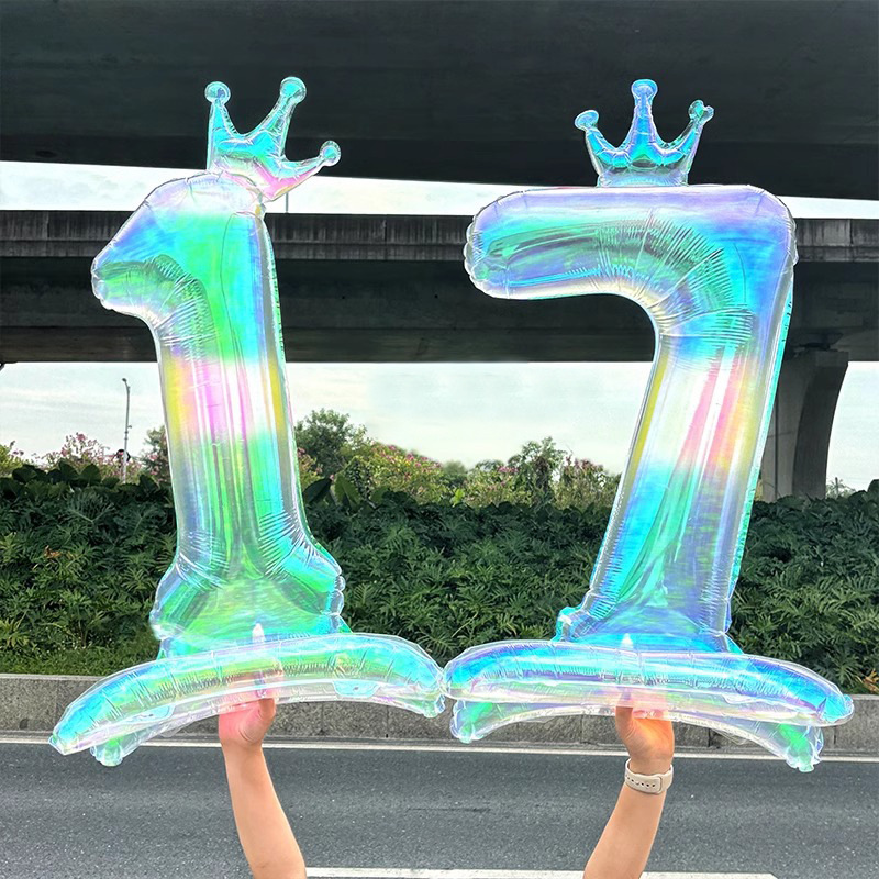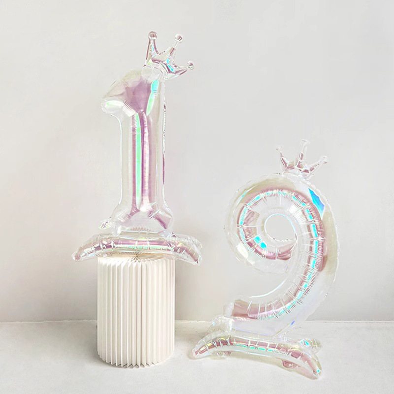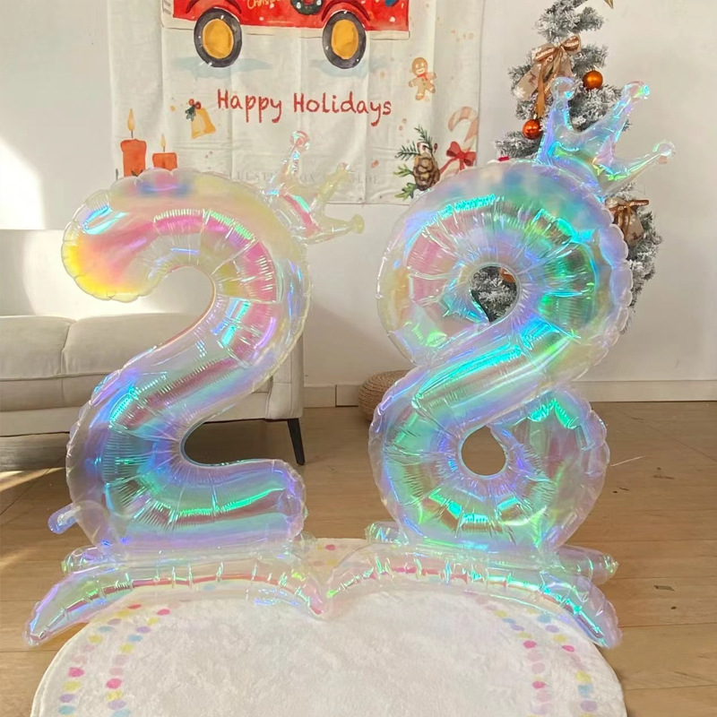 32インチ透明カラフルなクラウンベースのデジタルアルミ膜風船子供の誕生日パーティーの装飾は風船を配置します。