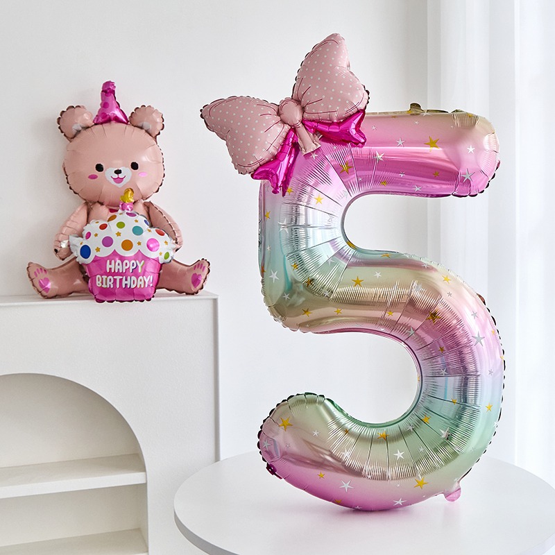 40インチ虹星グラデーション数字ちょう結び風船セット子供誕生日女の子パーティー装飾風船