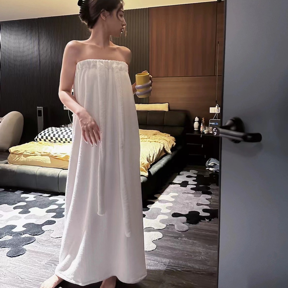ホームホテル用ウェアラブルビューティーサロンチューブトップバススカート、ベルベット、増厚、吸水性、保温性のあるホームセット、速乾性バスローブスタイル