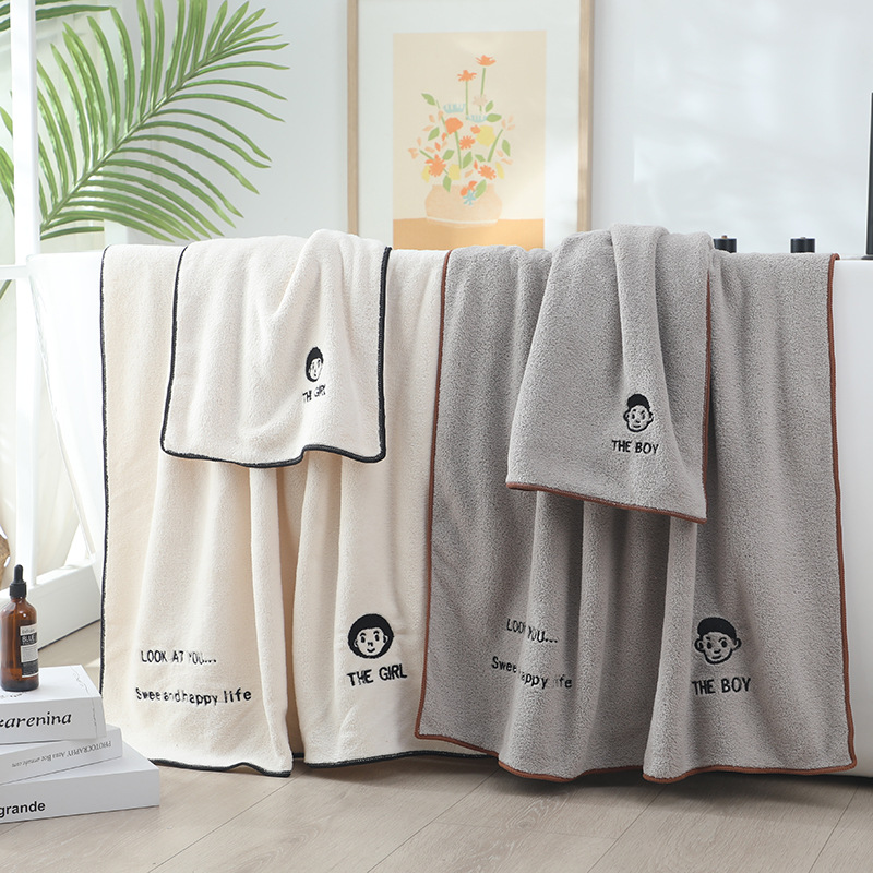 カップル用バスタオル、1組、家庭用、女性、男性、大人、子供用、吸水性タオル、綿100%、ラップタオル、コーラルベルベット、厚手