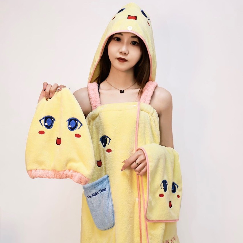 バスタオル、バスローブ、速乾バススカート、女性用秋冬全身巻き、家庭用ヘアドライキャップ、寮用3点セット、コーラルベルベット