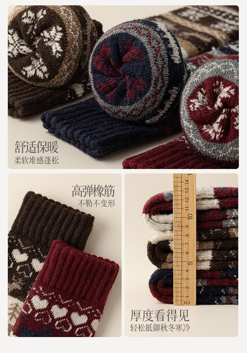 カシミヤ礼箱大紅靴下双針双路無線頭冬ウール中厚保温本命年靴下新年靴下