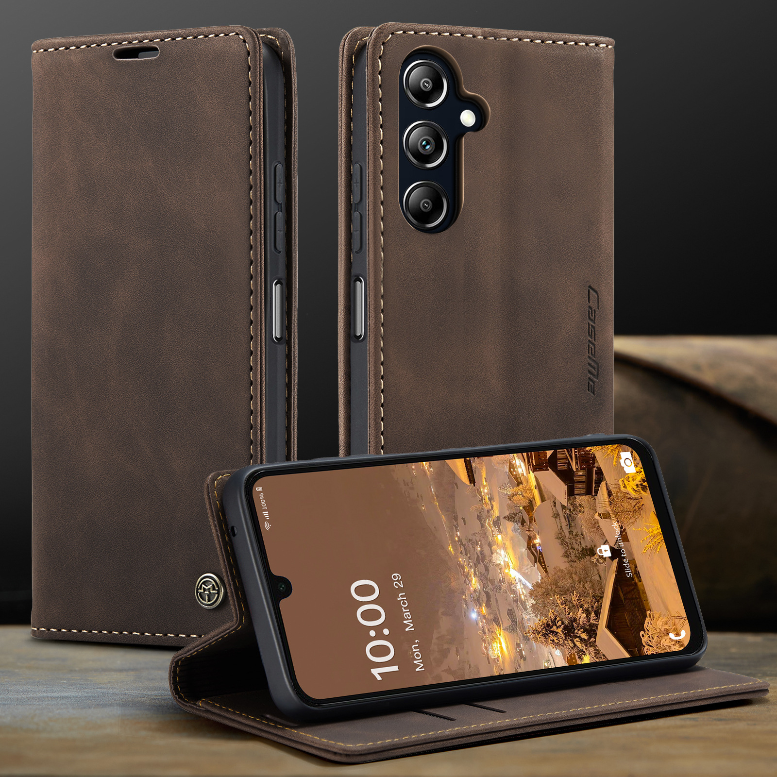CaseMeはサムスンa 16の転倒防止カードカバーa 06レトロな磁気吸引フロストカバーの携帯ケースを適用します。