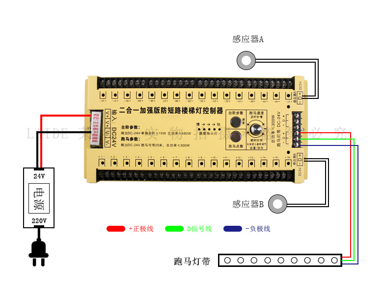 仕様 24V短絡防止階段コントローラー(強化版),流水ライト 12v24v126 ランプ 8mm ( 1m ),流水ライト 12v24v126 ランプ 8mm ( 10m )