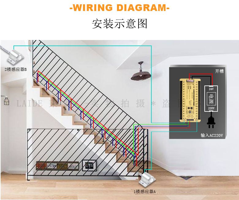 32番階段ステップランプコントローラdc 24vledランプは短絡防止知能人体誘導コントローラを持っている