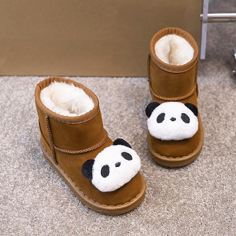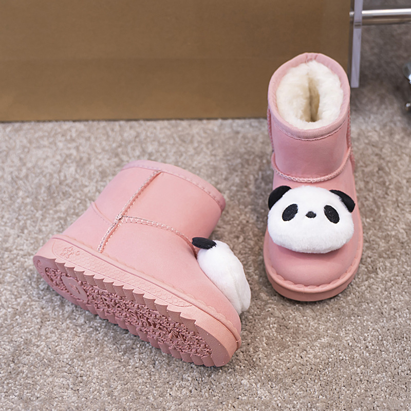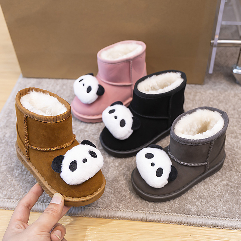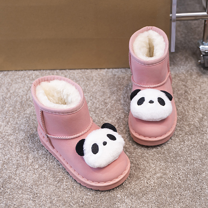 ネットの赤い雪の靴の女の子の2024の新型のパンダのベルベットの保温の綿の靴の1足は滑り止めのショートブーツを漕ぎます。