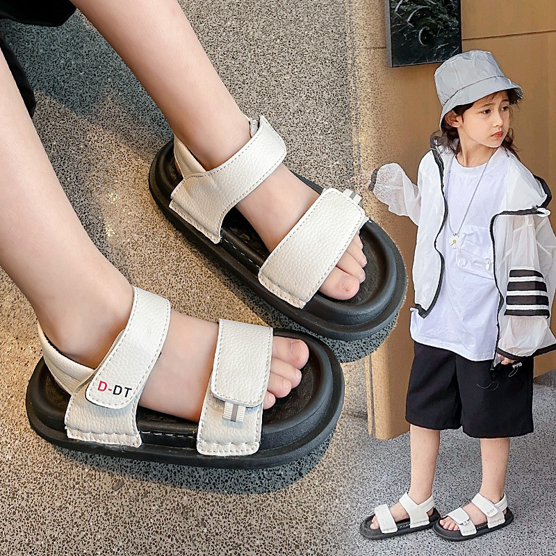 女の子のスポーツサンダルの夏のタイプの2024の新型の子供の足のビーチの靴の小さい子供の柔らかい底のカジュアルな男の子のサンダル