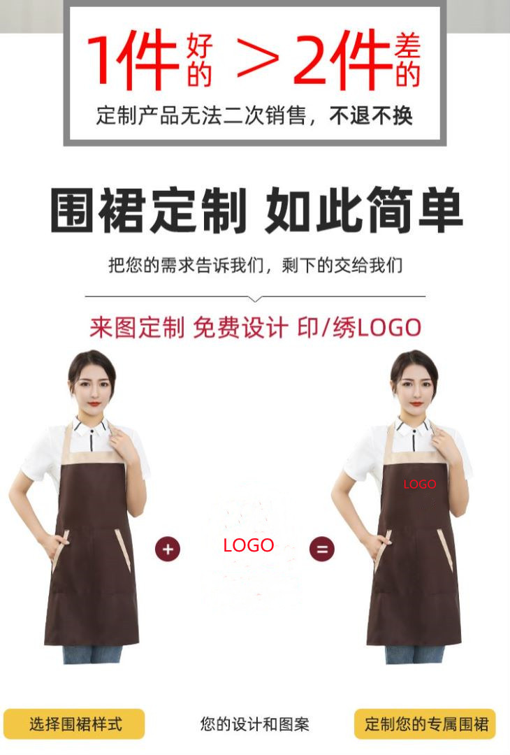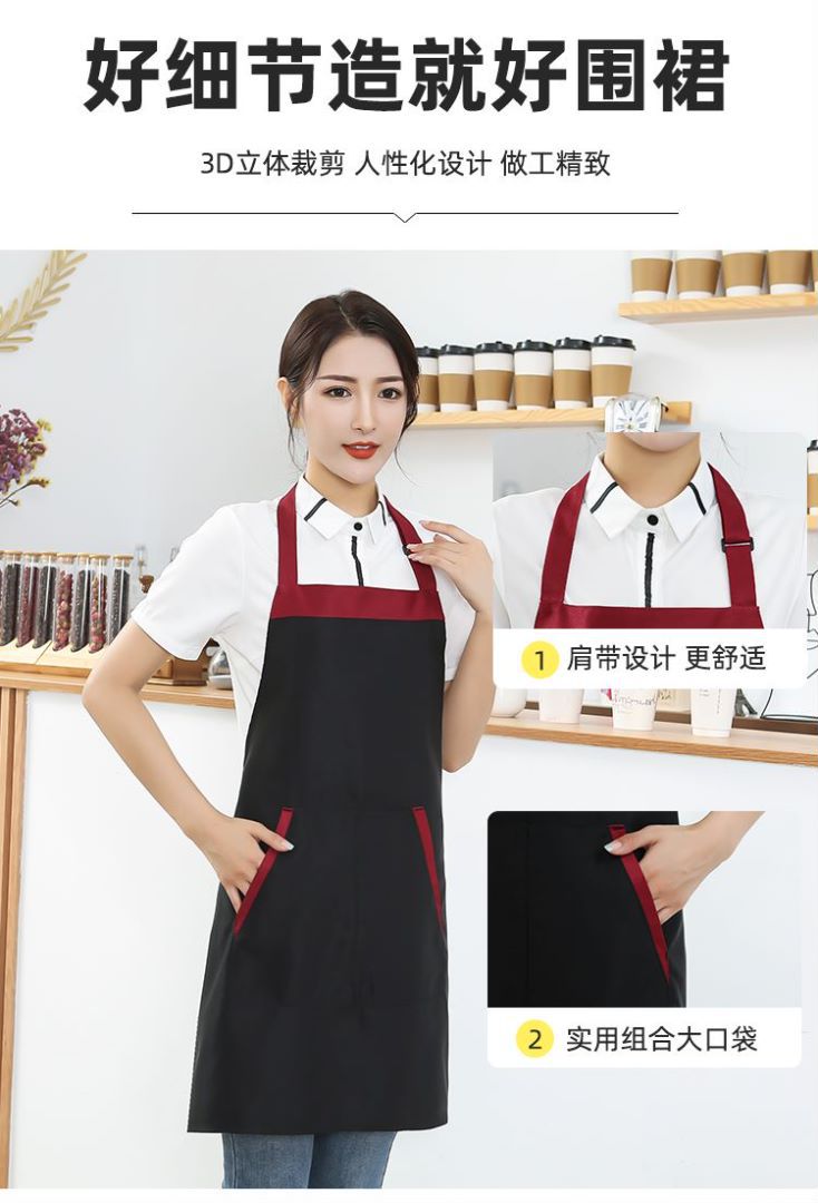 エプロンロゴ印字作業服シンプル女性ビジネスキッチン防水防油飲食店ウエスト男