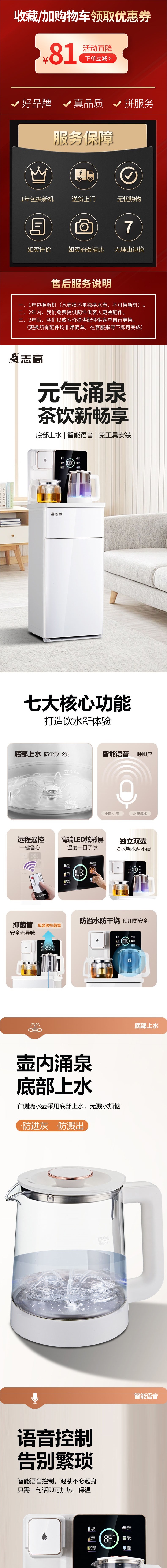 志高茶バー機浄水器2024年新型底部浸水知能音声下にバケツを置くオフィス家庭用
