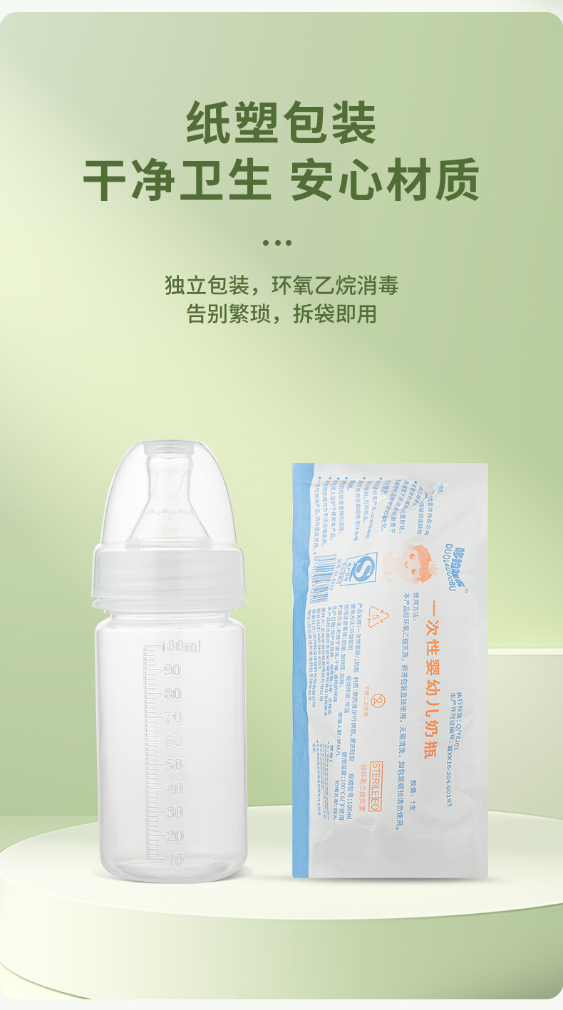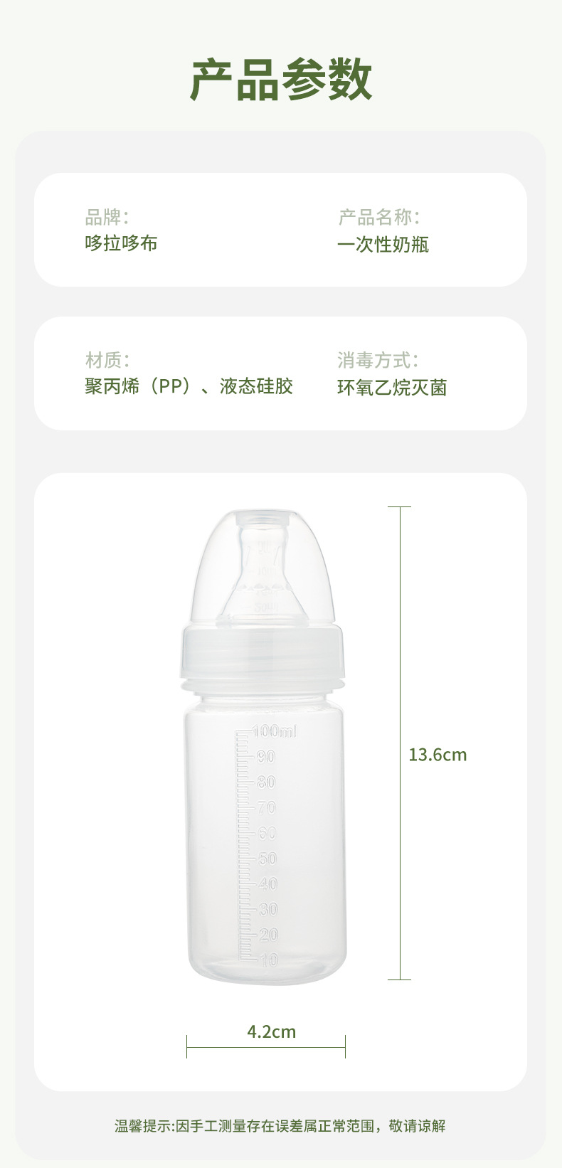 哆拉哆布即拆即用一次性奶瓶100ML便携式袋装款防尘款宝宝6525