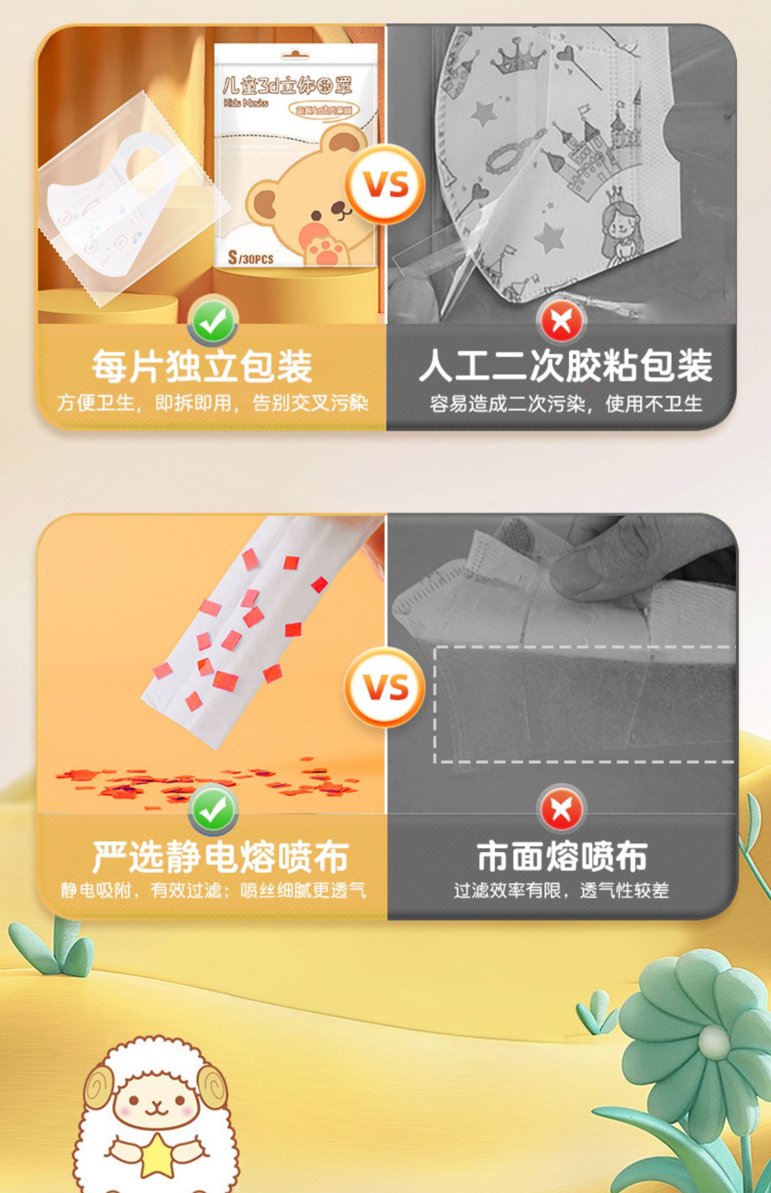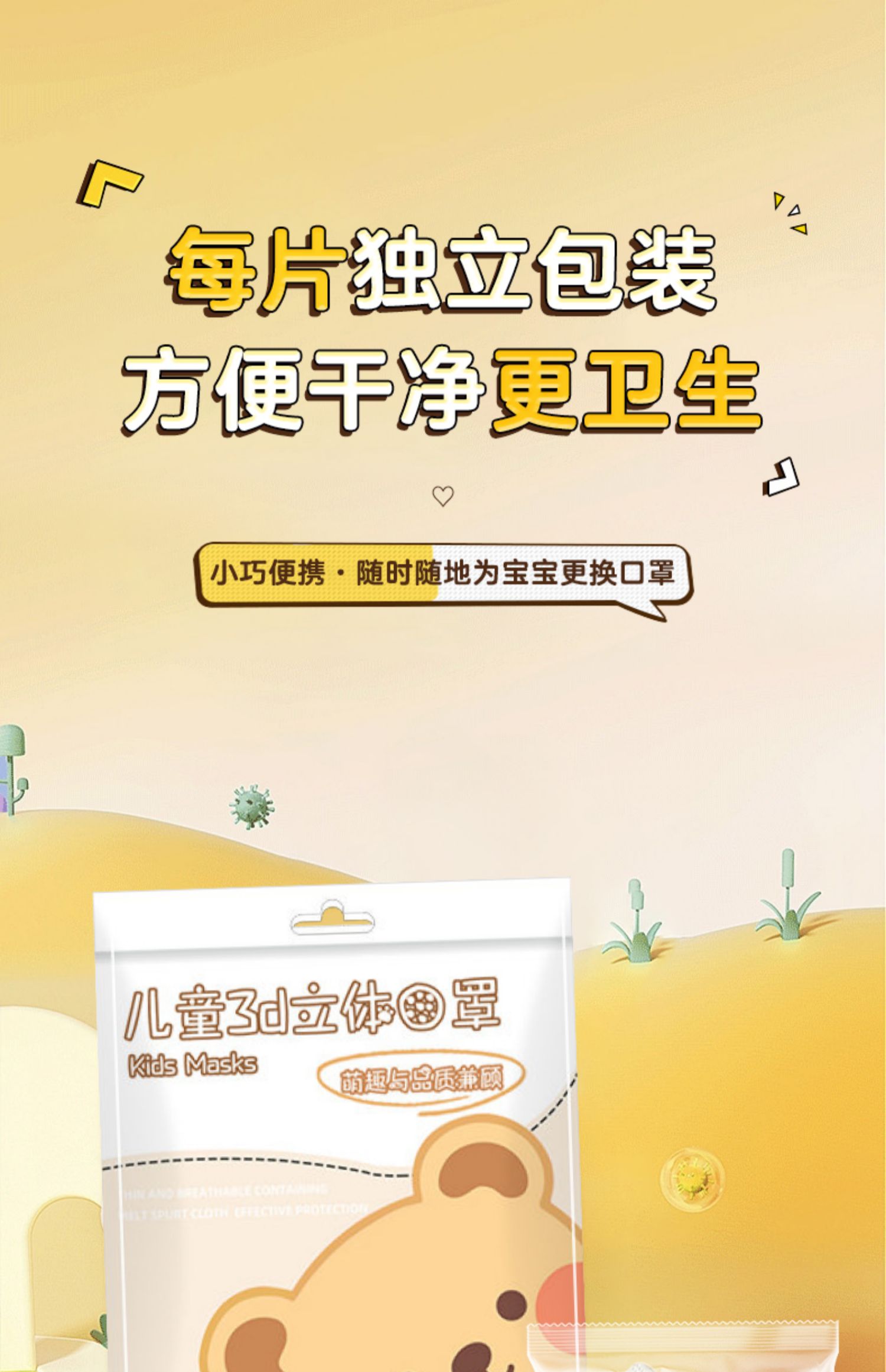 スポット3d立体児童マスク独立包装三層通気防塵フィルタ保温耳を切らない学生マスク