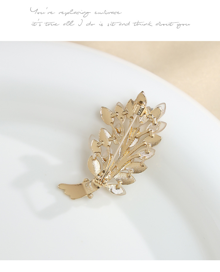 パールリーフブローチ、ファッショナブルで絶妙なリーフコサージュ、ハイエンドの露出防止ピン、衣類固定バックルアクセサリー