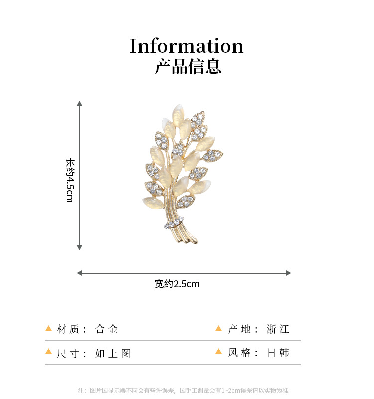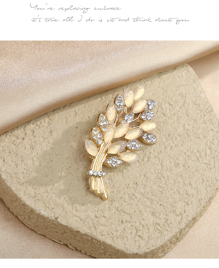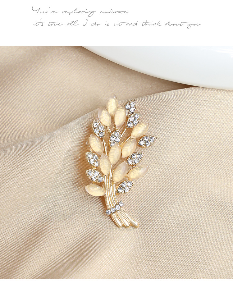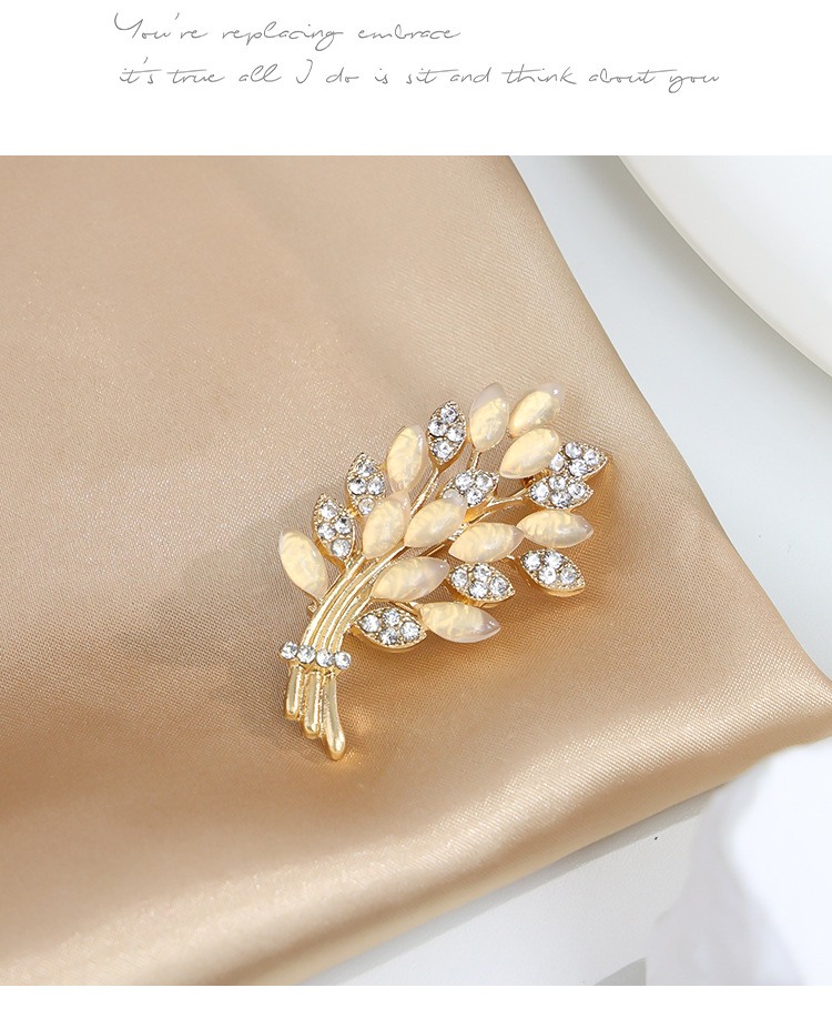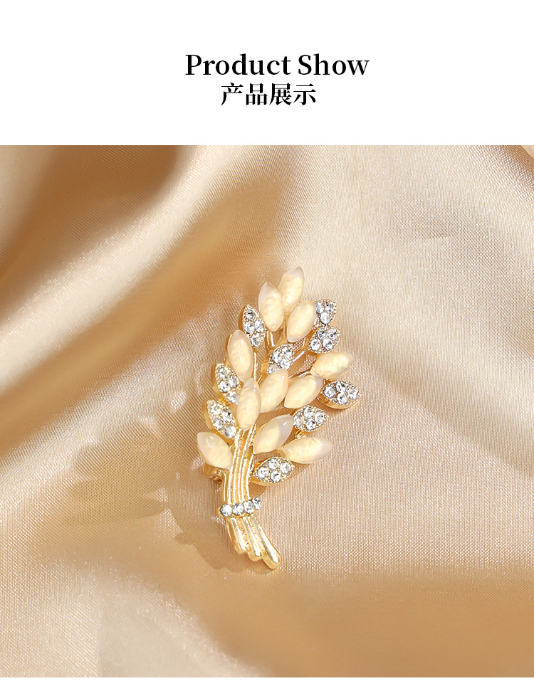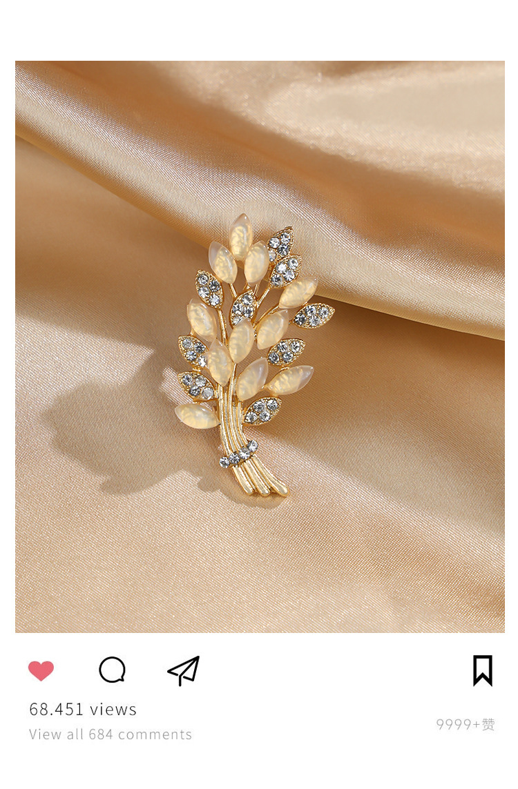 マットゴールドパールコサージュ、麦の穂スーツブローチ、女性用多用途ハイエンド固定ピン、露出防止パーソナライズアクセサリー