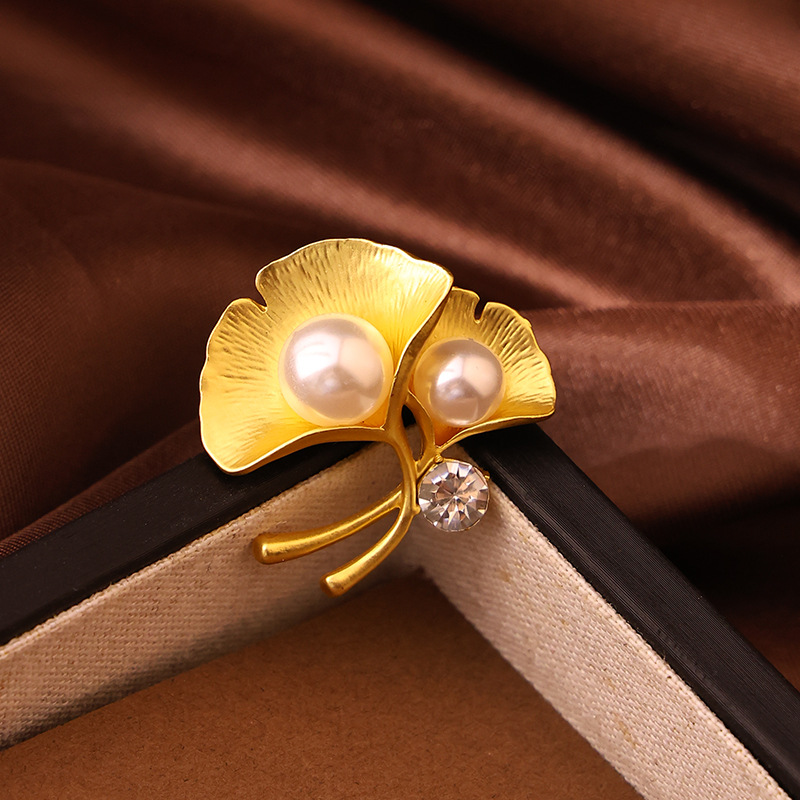 新款珍珠银杏叶胸针女防走光哑金色别针装饰外套西装固定衣服配饰