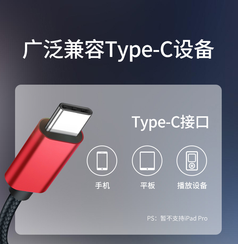 type-c转3.5mm音频线车用音响音箱aux插平板手机车载播放音频转接