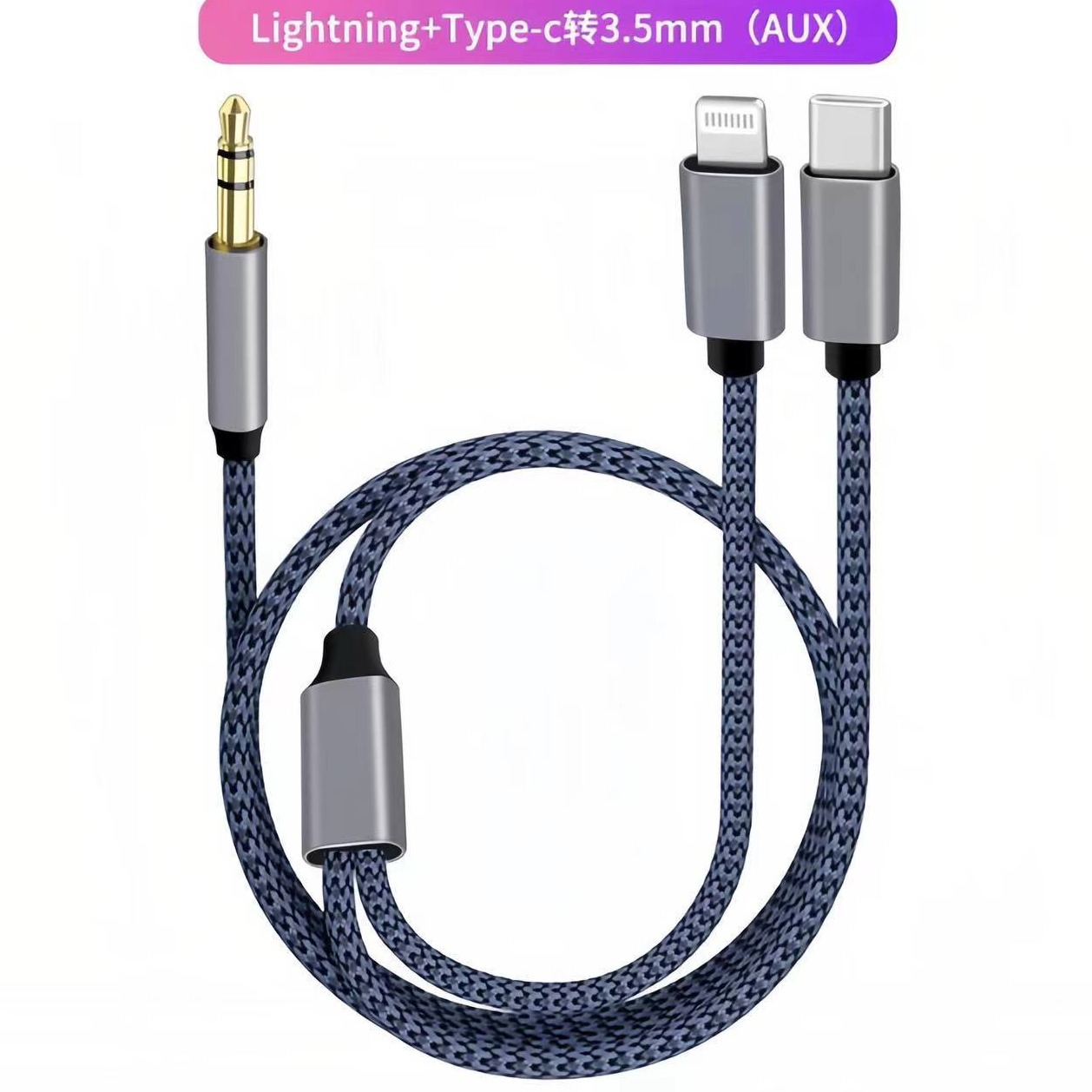 国境を越えて3.5mm変換type-cアップル車載オーディオケーブル2 in 1 AUXビデオケーブル音響中継ケーブルを適用する