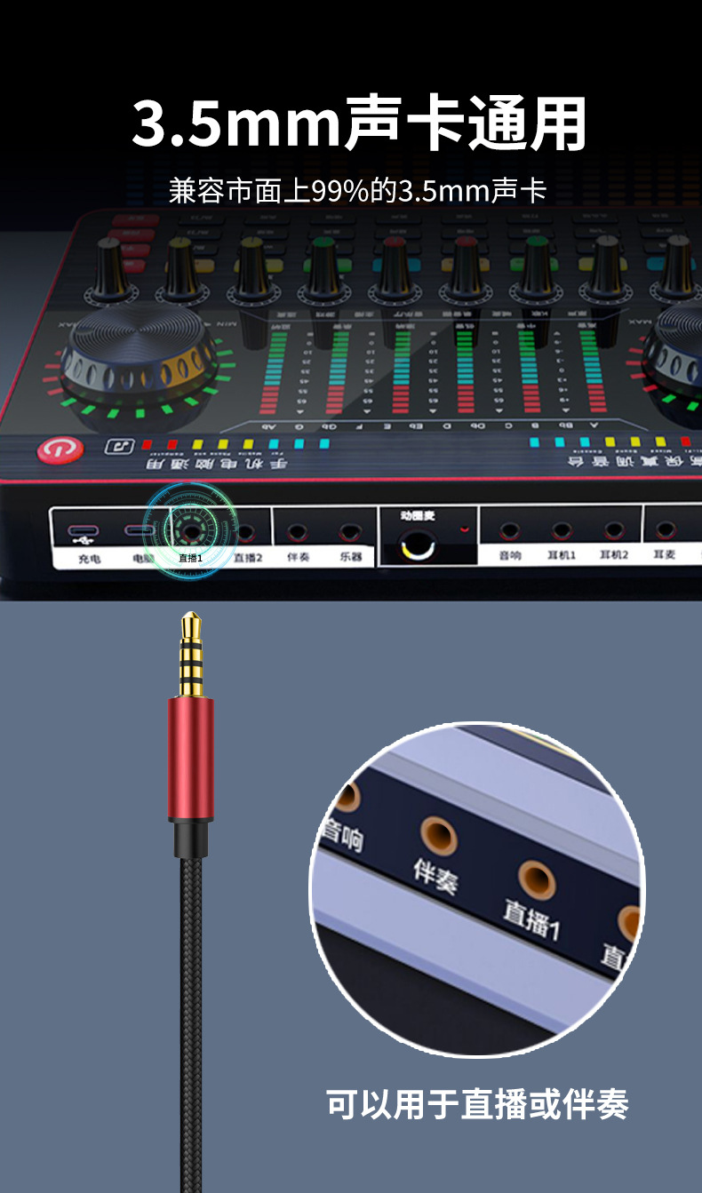 生放送線3.5mm金属伴奏線公対公音カード接続携帯電話k歌延長5メートル10メートル接続線