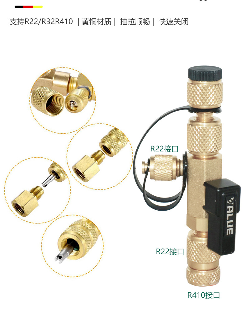 エアコン冷蔵庫保圧加フッ素ボールバルブ付きスイッチダブル1/4内糸接続ヘッドスイッチ付き接続ヘッドex-08