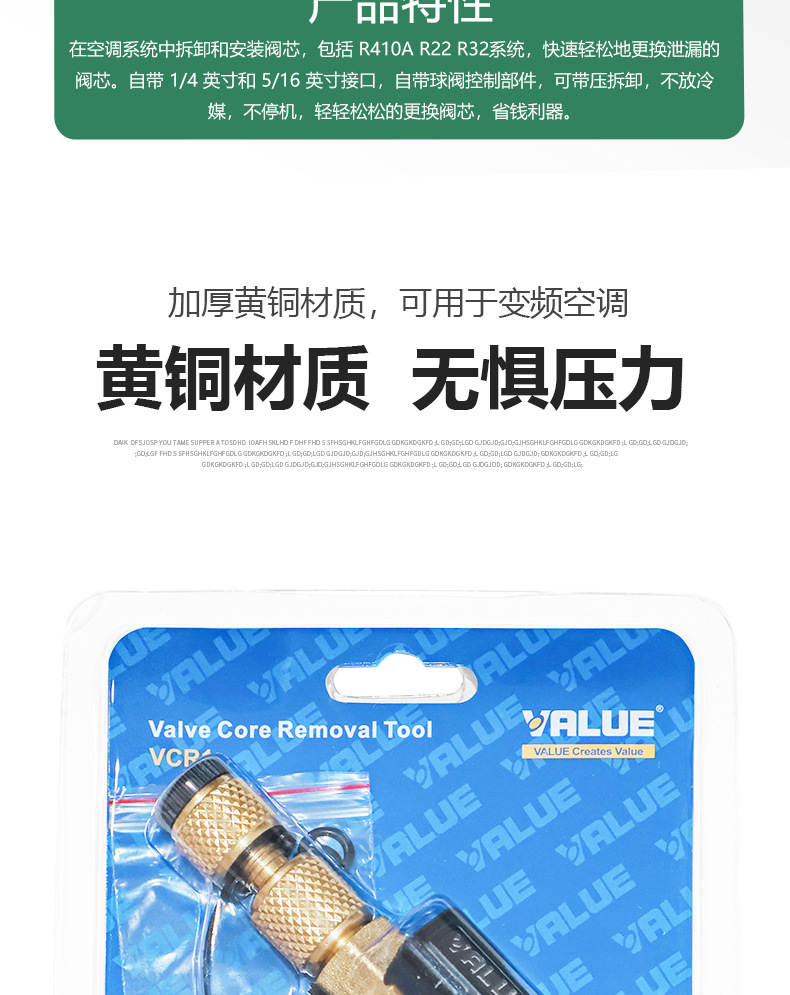 真空定格バルブコア取り外しツール、バルブ取り外しツール、真空定格値は20ミクロン銅です
