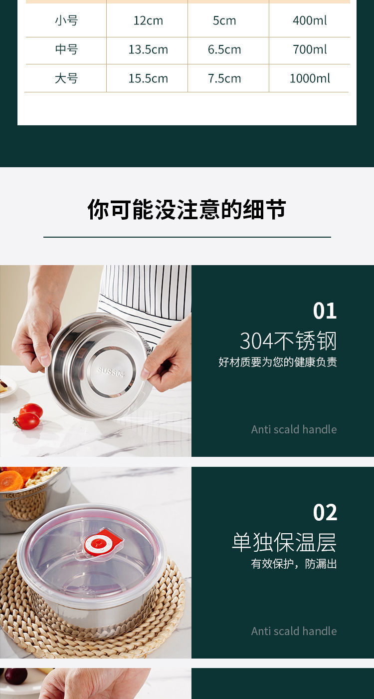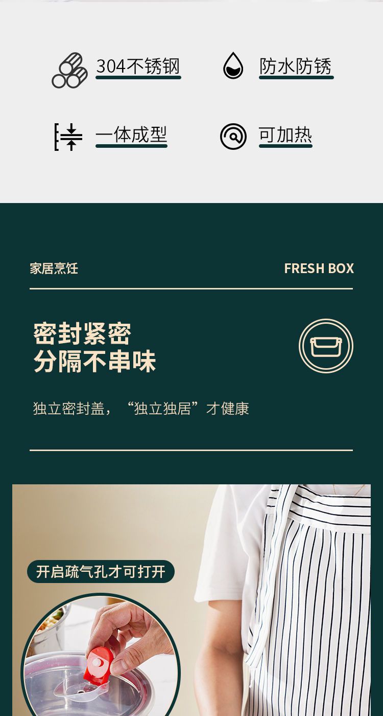 304ステンレス新鮮箱蓋付き弁当箱冷蔵庫収納箱多機能弁当箱サラリーマン密安零容