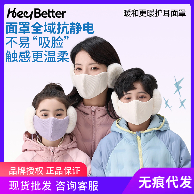 HeyBetter儿童护耳面罩1件3用防寒耳捂子抗静电秋冬保暖抑菌口罩
