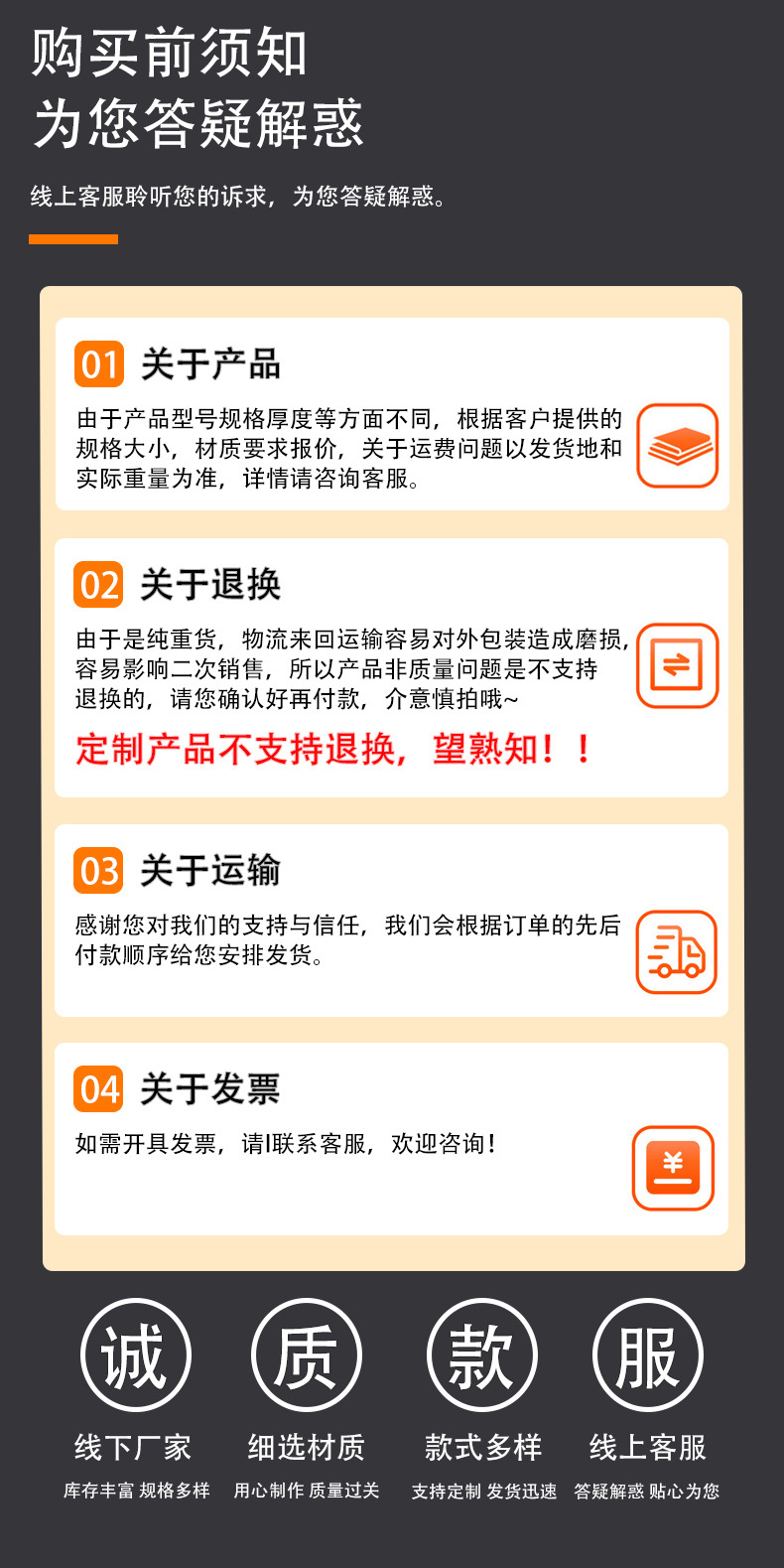 本公司非标厚度和宽度可承接定制!详情请咨询客服。