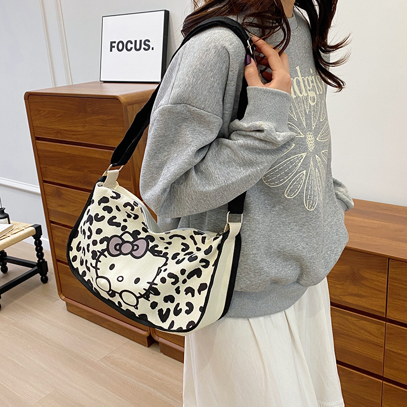 ハローキティの漫画のプリントのぬいぐるみのバッグの女性の秋冬の新型の怠惰な風の大容量の豹の紋様のショルダーバッグ