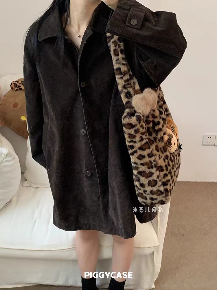 2025新型ベルベット豹紋アニメバッグ毛羽立ち大容量秋冬かわいい怠惰なショルダーバッグ