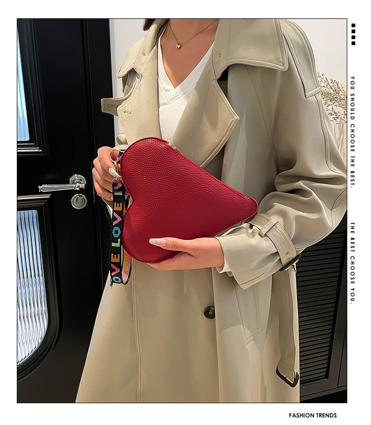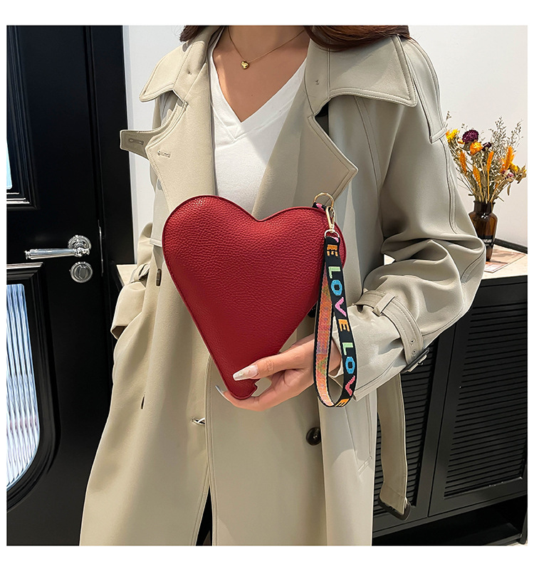 シンプルなファッション2024愛の新しい冬のファッションハート型純色カジュアルファッション口紅ハンドバッグ女性
