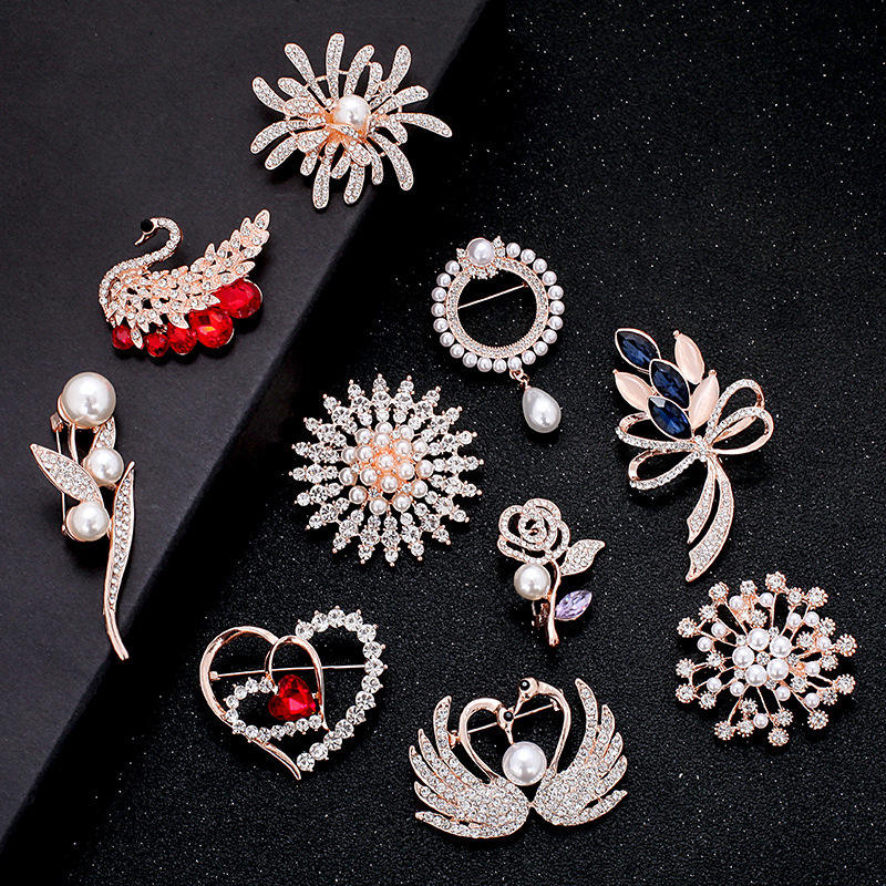 韓国の新型ファッション花真珠水晶ブローチ女性気質猫眼石にダイヤモンドを入れて、光を防ぐことができます。
