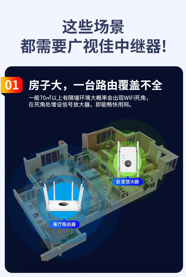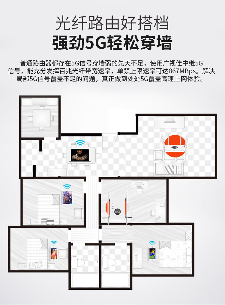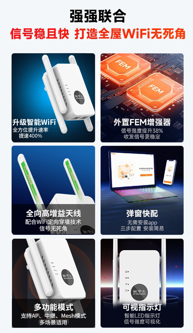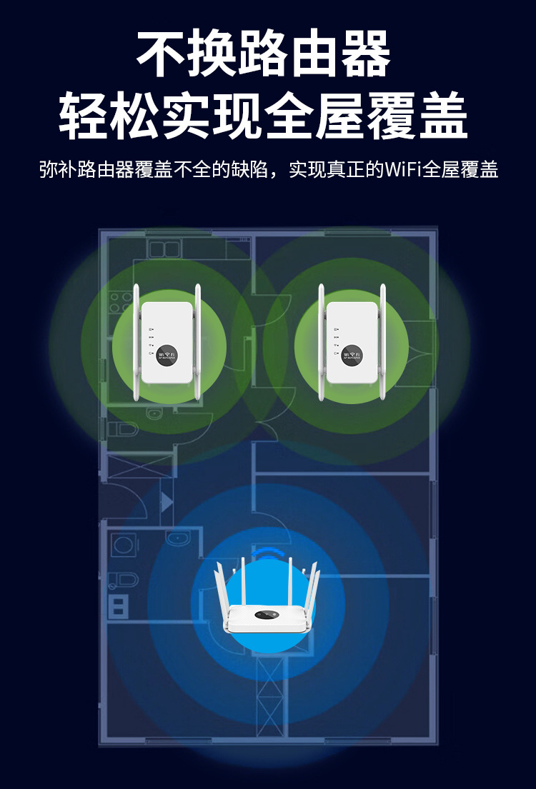 wifi信号增强6六天线高速放大器扩大器1200m5g双频中继器信号扩展