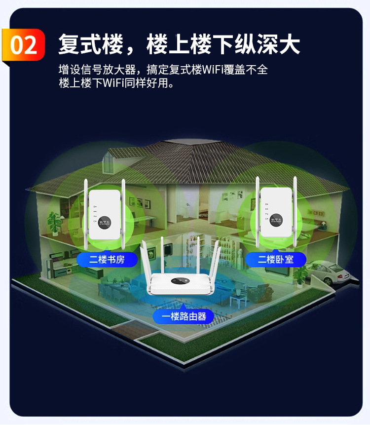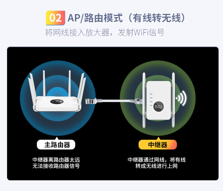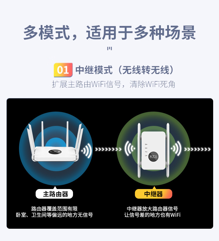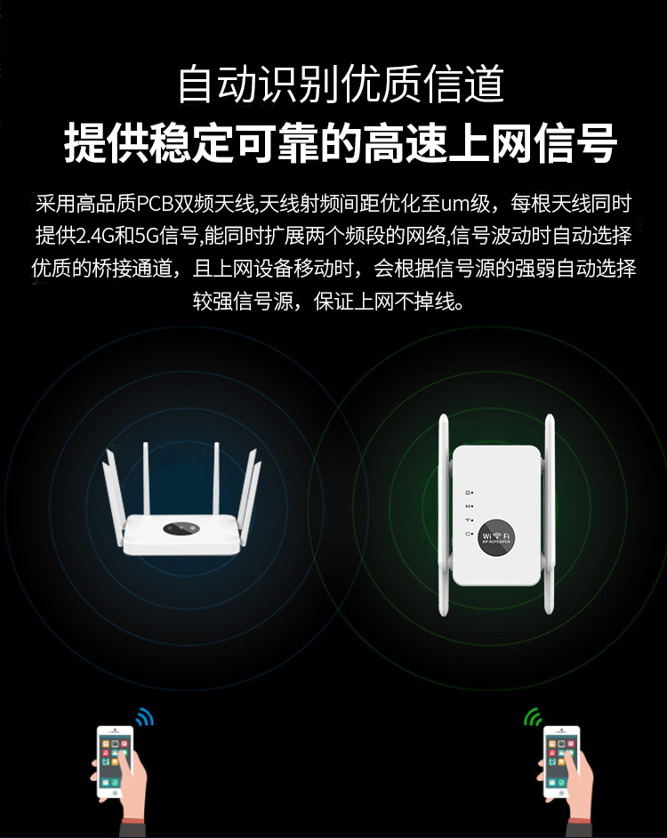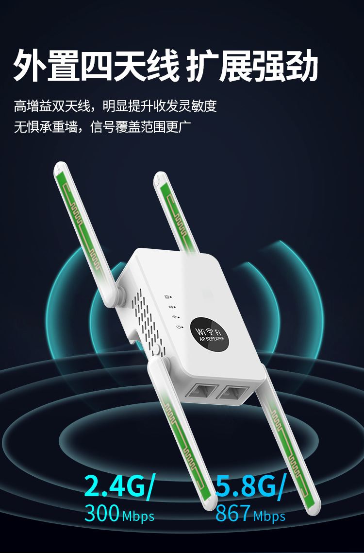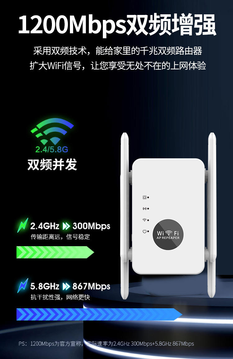 WiFi信号放大器增强扩大器无线网络扩展器1200M中继器厂家批发